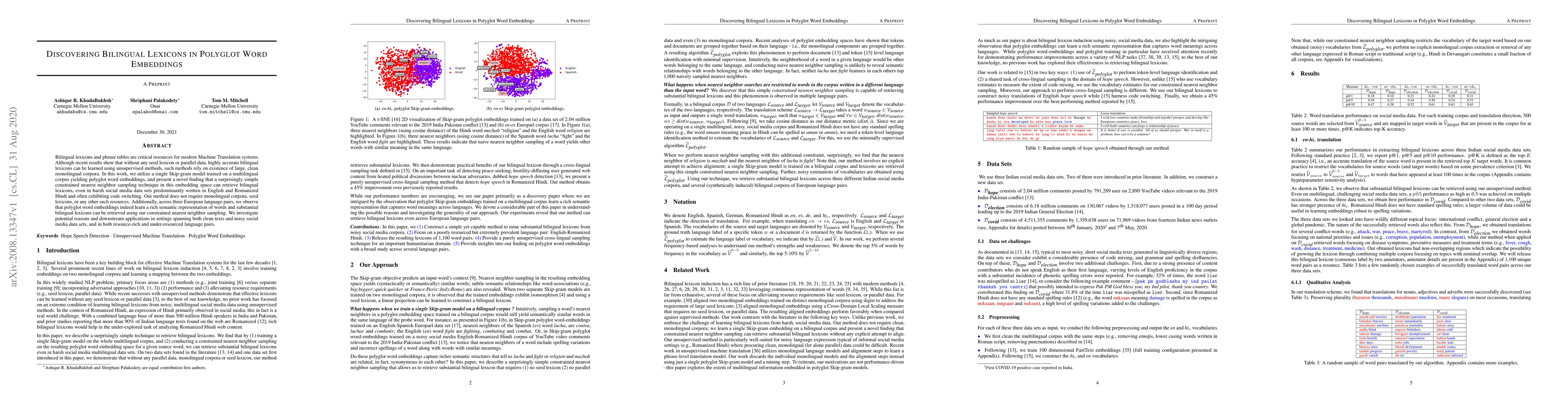 This paper presents a method to extract bilingual lexicons from polyglot word embeddings generated by a single Skip-gram model trained on a multilingual corpus. The approach uses a constrained nearest-neighbor sampling technique without requiring monolingual corpora or seed lexicons, demonstrating its effectiveness across various European language pairs and noisy social media data.