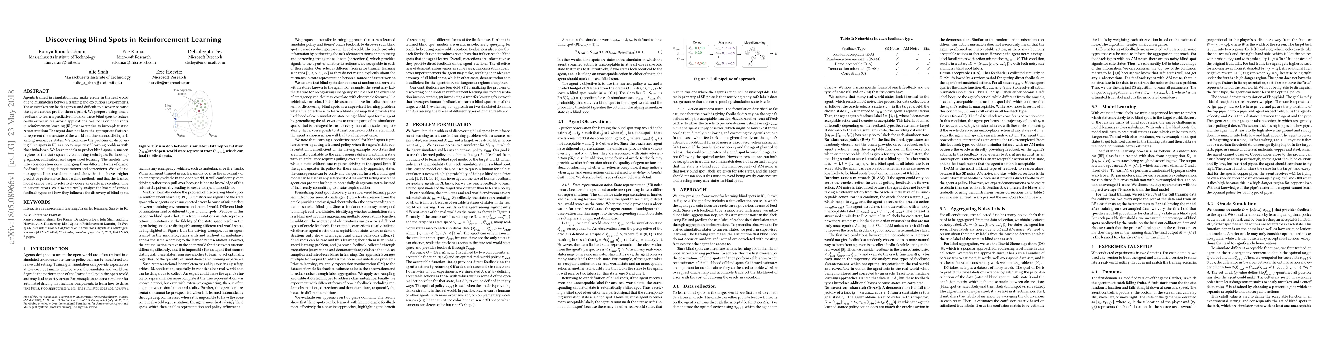 This paper proposes a method to identify and mitigate blind spots in reinforcement learning agents by using oracle feedback to predict errors arising from incomplete state representations. The approach combines label aggregation, calibration, and supervised learning to improve predictive performance and prevent costly real-world errors.