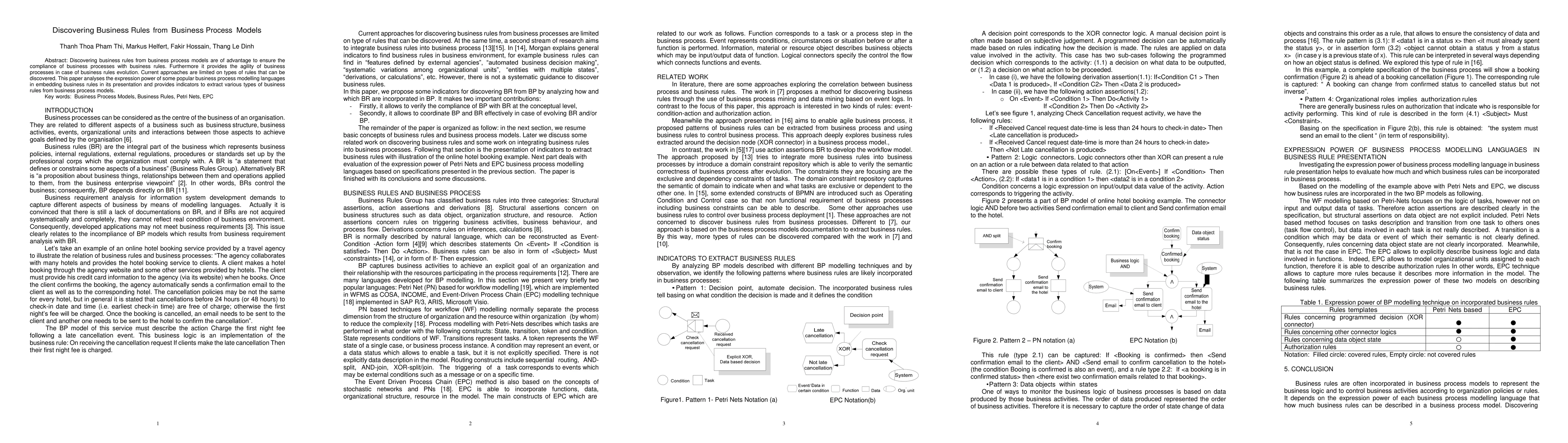 This paper explores how business rules can be extracted from business process models to ensure compliance and adaptability, analyzing the capabilities of popular modelling languages to embed and reveal different types of business rules. It proposes indicators for extracting these rules to enhance business process agility.