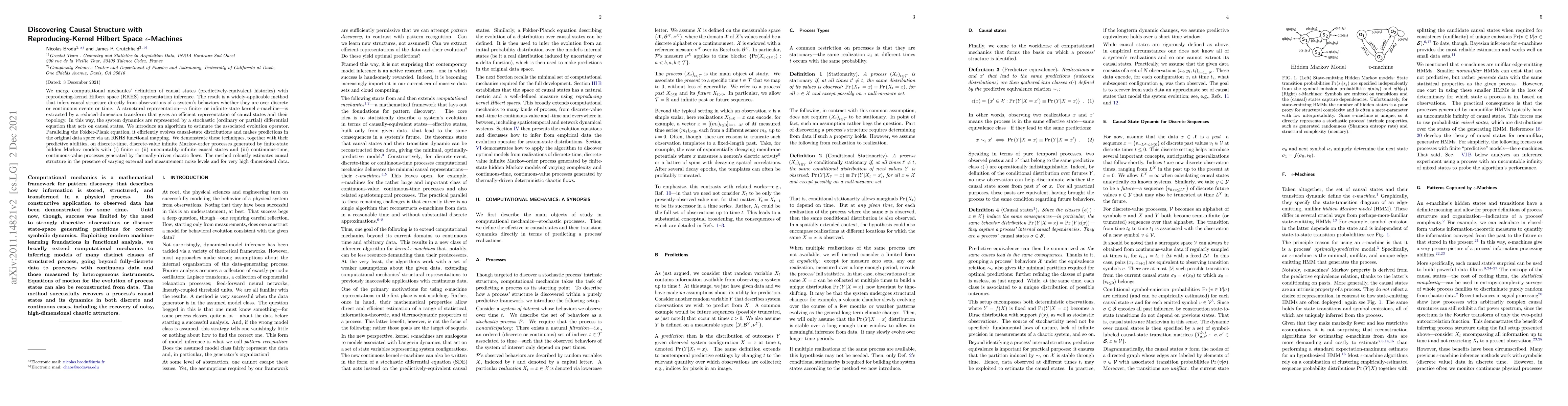 This paper introduces a method combining computational mechanics' causal states with RKHS inference to infer causal structures directly from observations. It presents an algorithm to estimate an evolution operator that efficiently predicts system dynamics in both discrete and continuous settings, demonstrating robustness across various noise and data complexity levels.