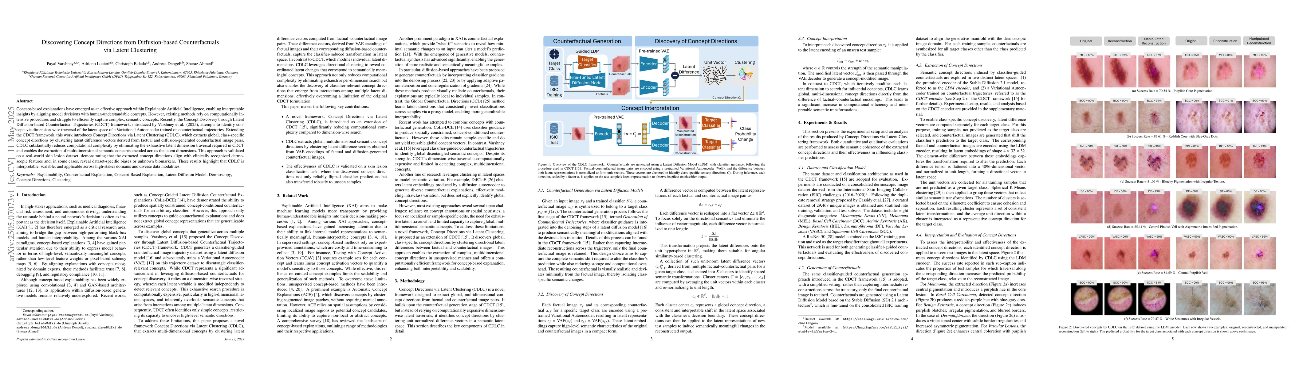 This research paper introduces Concept Directions via Latent Clustering (CDLC), a method that reduces computational complexity to extract multidimensional semantic concepts from counterfactual image pairs, with promising results on a skin lesion dataset.