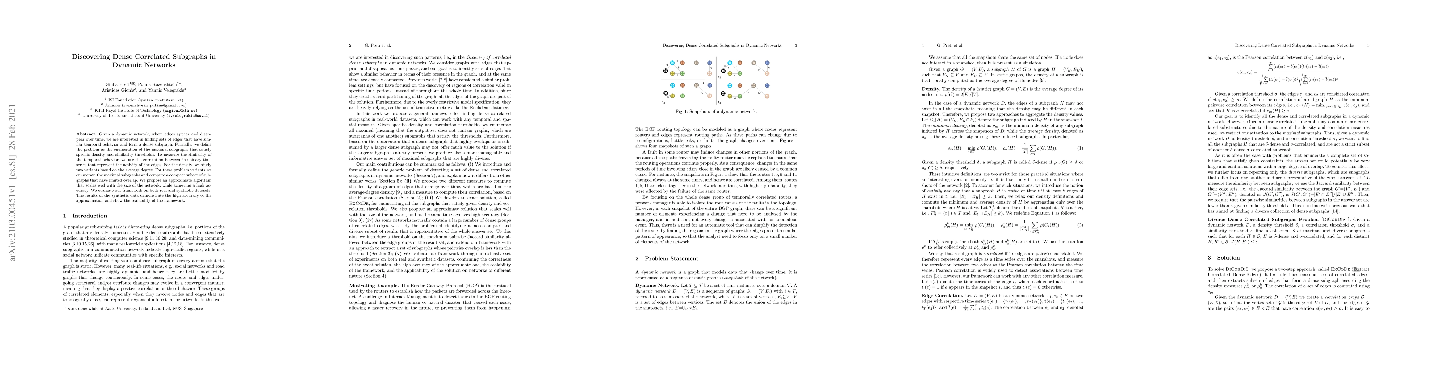 This paper proposes an algorithm to identify dense correlated subgraphs in dynamic networks by enumerating maximal subgraphs based on edge activity correlation and density thresholds. The method scales well and achieves high accuracy, as demonstrated through evaluations on both real and synthetic datasets.