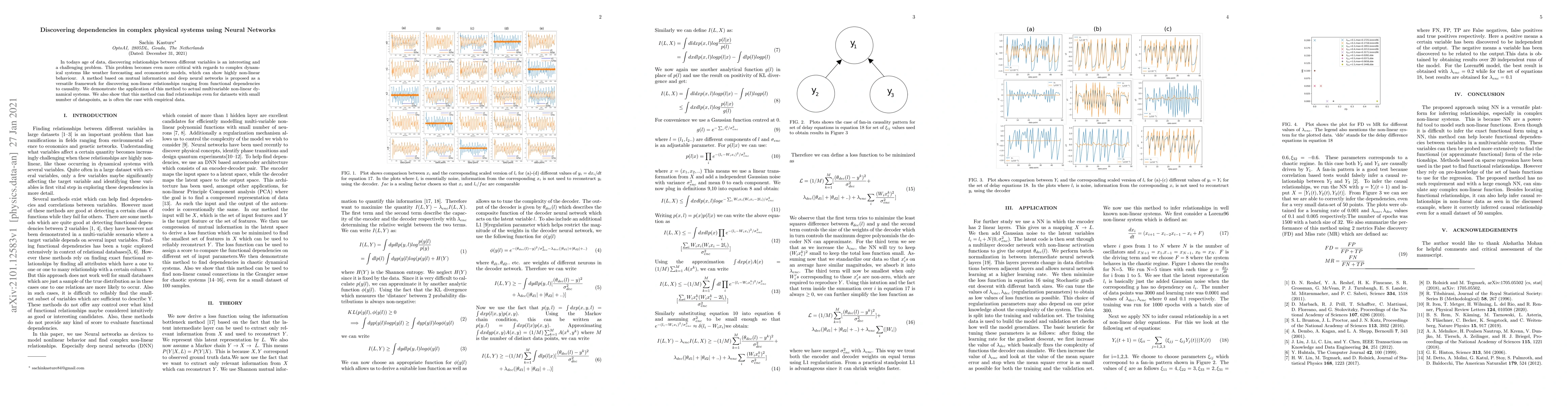 In todays age of data, discovering relationships between different variables is an interesting and a challenging problem. This problem becomes even more critical with regards to complex dynamical systems like weather forecasting and econometric models, which can show highly non-linear behavior. A method based on mutual information and deep neural networks is proposed as a versatile framework for discovering non-linear relationships ranging from functional dependencies to causality. We demonstrate the application of this method to actual multivariable non-linear dynamical systems. We also show that this method can find relationships even for datasets with small number of datapoints, as is often the case with empirical data.