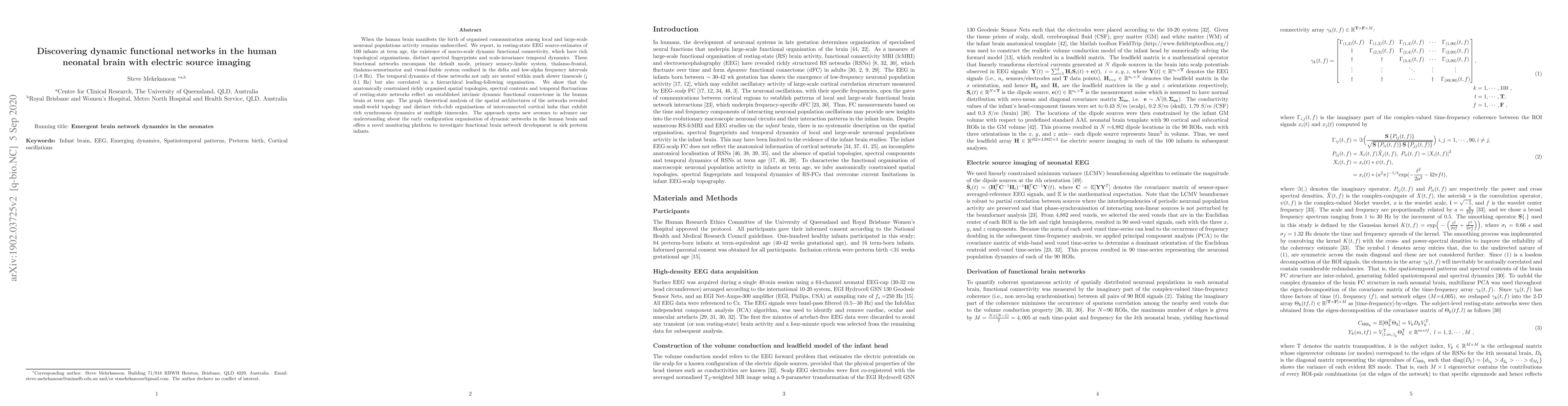 This study reveals the existence of macro-scale dynamic functional connectivity in the human neonatal brain using resting-state EEG, showing organized communication networks with rich topological organizations and scale-invariant temporal dynamics. The findings suggest an intrinsic dynamic functional connectome at term age, with small-world topology and rich-club organizations.