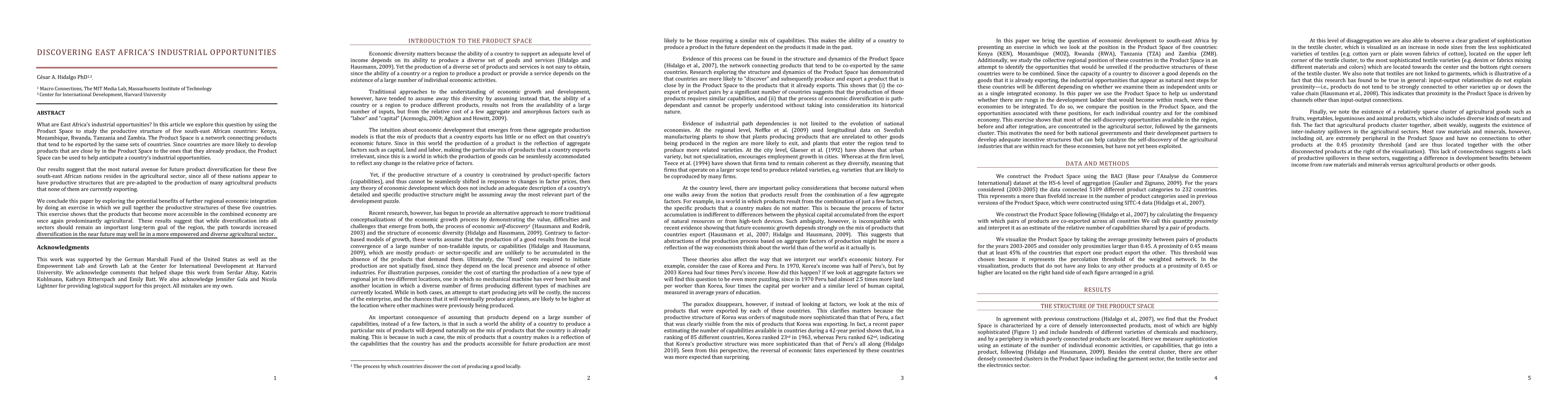 East African countries Kenya, Mozambique, Rwanda, Tanzania, and Zambia have industrial opportunities primarily in the agricultural sector, according to a study that used the Product Space to analyze their productive structures.