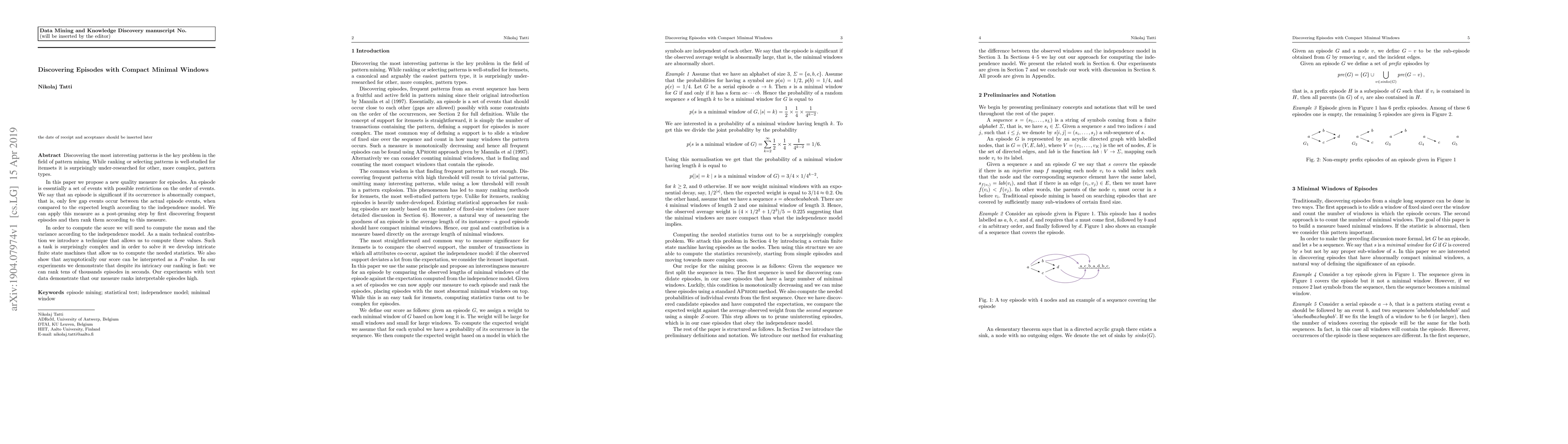 This paper introduces a new quality measure for ranking significant episodes based on their compactness, using a post-pruning approach after discovering frequent episodes. It employs complex finite state machines to compute necessary statistics and demonstrates fast ranking of tens of thousands of episodes.