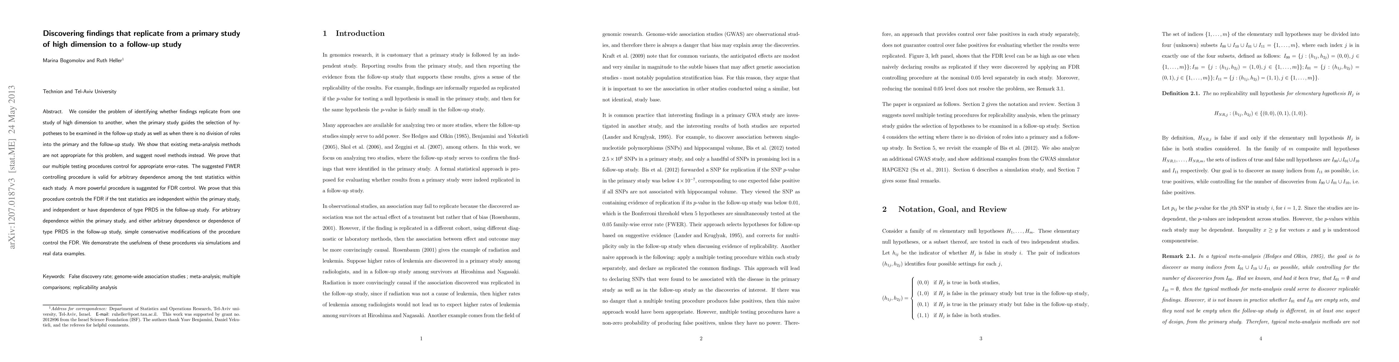 Researchers propose novel methods to identify replicating findings between high-dimensional studies, offering more powerful procedures for controlling false discovery rates and false positives.