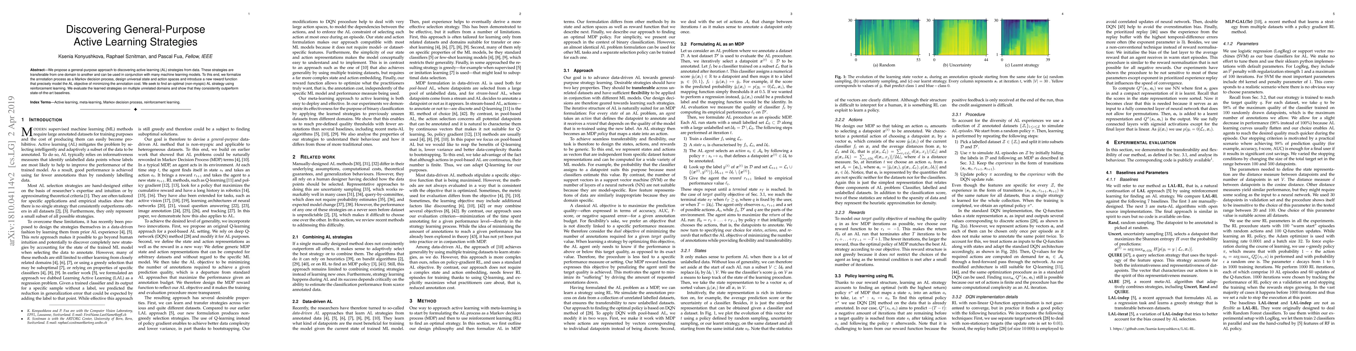 This paper proposes a general-purpose active learning strategy that can be transferred across domains, utilizing reinforcement learning to optimize the annotation process and minimize costs. The approach outperforms existing methods in various domains, demonstrating its effectiveness.
