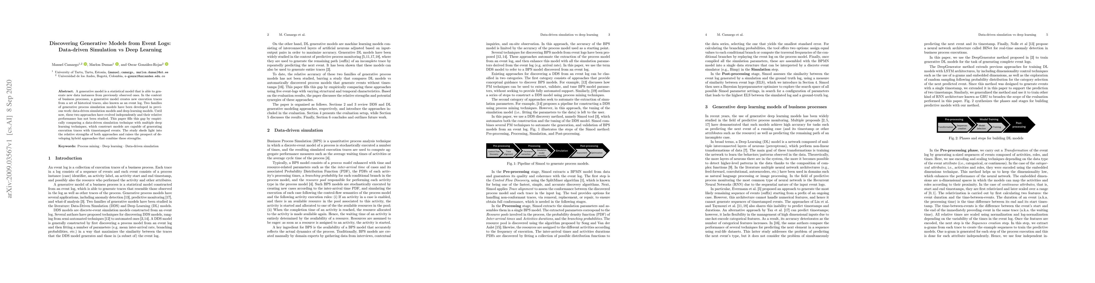 This paper compares data-driven simulation models and deep learning techniques for generating new execution traces from historical event logs in business processes. The study reveals the relative strengths of both approaches and suggests potential for hybrid models that combine their benefits.