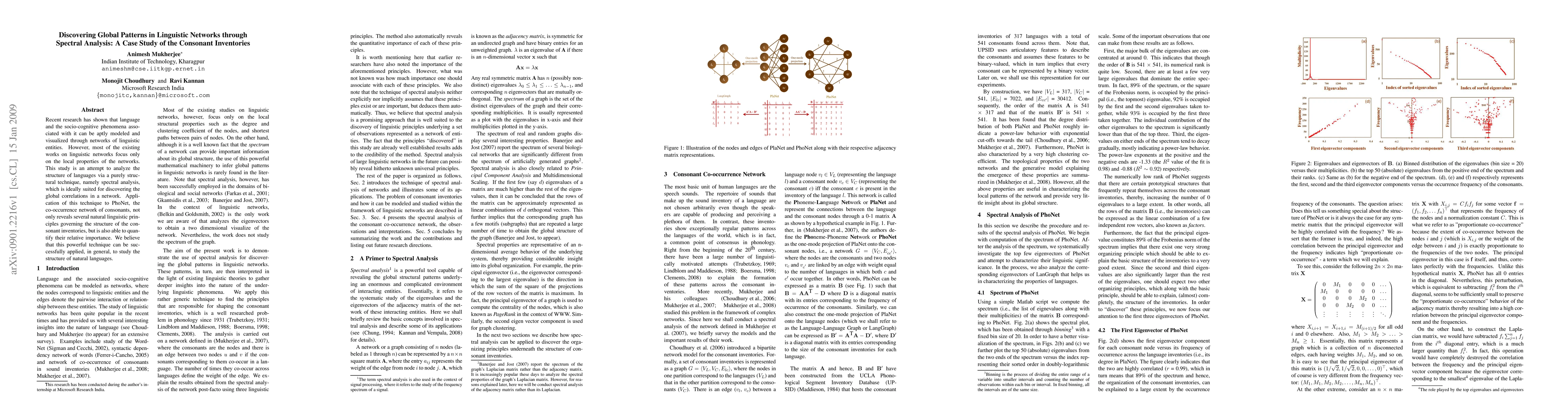 Recent research has shown that language and the socio-cognitive phenomena associated with it can be aptly modeled and visualized through networks of linguistic entities. However, most of the existing works on linguistic networks focus only on the local properties of the networks. This study is an attempt to analyze the structure of languages via a purely structural technique, namely spectral analysis, which is ideally suited for discovering the global correlations in a network. Application of this technique to PhoNet, the co-occurrence network of consonants, not only reveals several natural linguistic principles governing the structure of the consonant inventories, but is also able to quantify their relative importance. We believe that this powerful technique can be successfully applied, in general, to study the structure of natural languages.