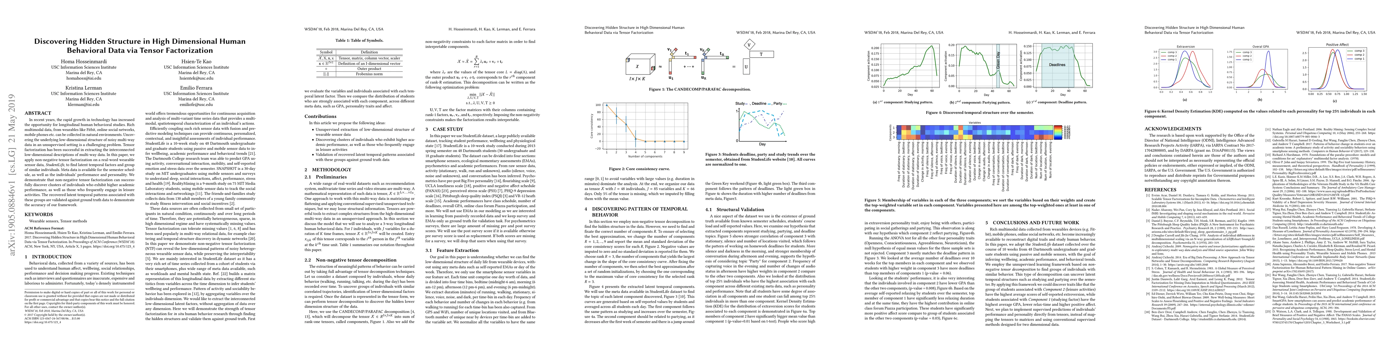 This paper applies non-negative tensor factorization to wearable sensor data from the StudentLife dataset to uncover hidden temporal structures and identify groups of individuals with similar behavioral patterns, demonstrating its effectiveness in revealing clusters linked to academic performance and leisure activities.