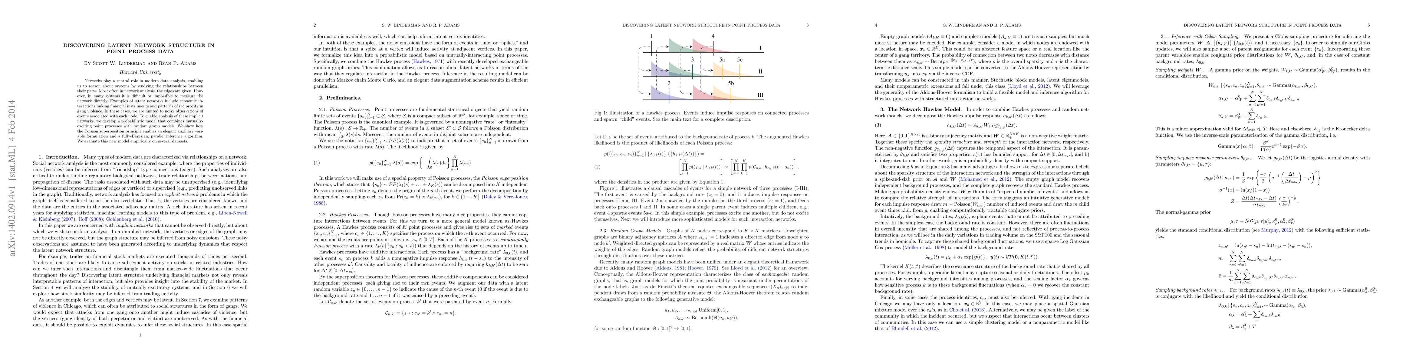 Researchers developed a new model to analyze latent networks in point process data, enabling analysis of implicit relationships between nodes. The model combines mutually-exciting point processes with random graph models and offers a fully-Bayesian inference algorithm.