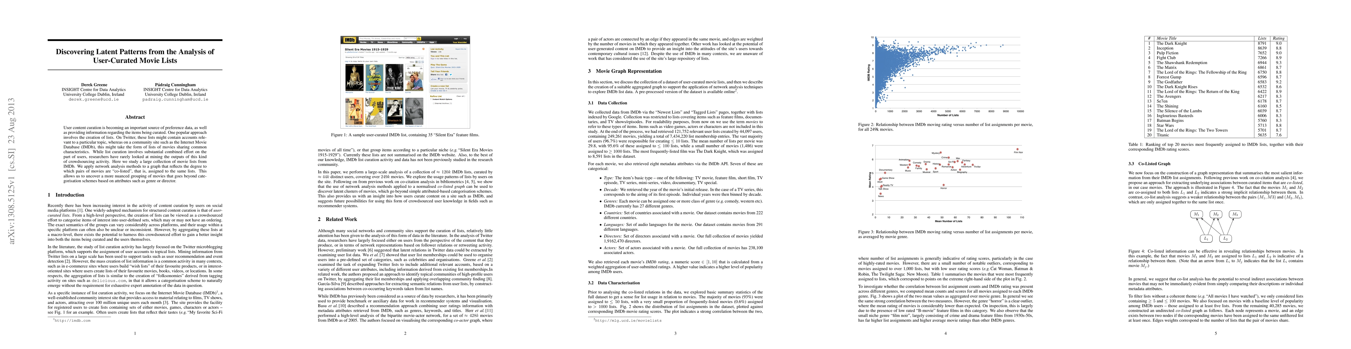 User content curation is becoming an important source of preference data, as well as providing information regarding the items being curated. One popular approach involves the creation of lists. On Twitter, these lists might contain accounts relevant to a particular topic, whereas on a community site such as the Internet Movie Database (IMDb), this might take the form of lists of movies sharing common characteristics. While list curation involves substantial combined effort on the part of users, researchers have rarely looked at mining the outputs of this kind of crowdsourcing activity. Here we study a large collection of movie lists from IMDb. We apply network analysis methods to a graph that reflects the degree to which pairs of movies are "co-listed", that is, assigned to the same lists. This allows us to uncover a more nuanced grouping of movies that goes beyond categorisation schemes based on attributes such as genre or director.