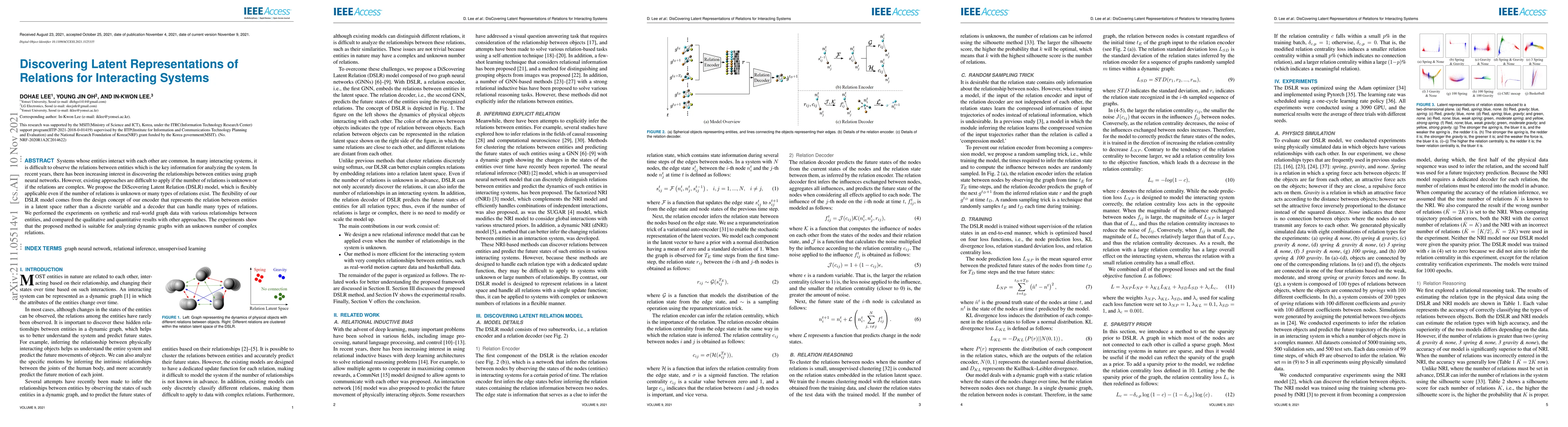 The paper introduces the DSLR model to discover latent representations of relations in interacting systems, especially when the number of relations is unknown or complex. The model's encoder and decoder enable flexible analysis of dynamic graphs, outperforming other methods in experiments on synthetic and real-world datasets.
