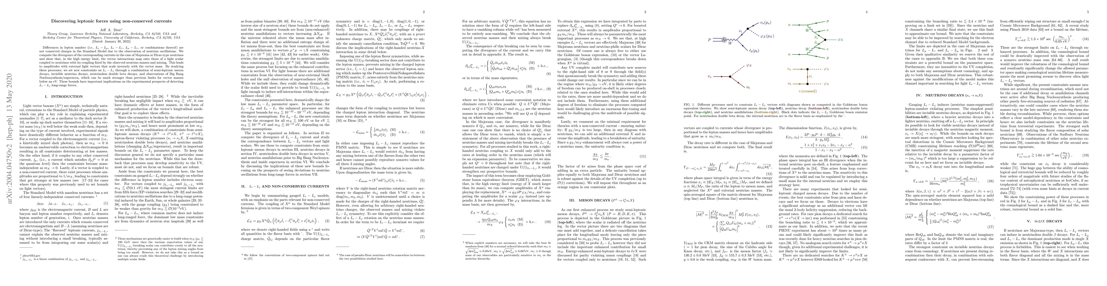 Differences in lepton number (i.e., $ L _e - L _\mu $, $ L _e - L _\tau $, $ L_\mu - L _\tau $, or combinations thereof) are not conserved charges in the Standard Model due to the observation of neutrino oscillations. We compute the divergence of the corresponding currents in the case of Majorana or Dirac-type neutrinos and show that, in the high energy limit, the vector interactions map onto those of a light scalar coupled to neutrinos with its coupling fixed by the observed neutrino masses and mixing. This leads to amplitudes with external light vectors that scale inversely with the vector mass. By studying these processes, we set new constraints on $ L _i - L _j $ through a combination of semi-leptonic meson decays, invisible neutrino decays, neutrinoless double beta decays, and observations of Big Bang Nucleosynthesis/supernova, which can be much stronger than previous limits for vector masses below an eV. These bounds have important implications on the experimental prospects of detecting $ L _i - L _j $ long-range forces.