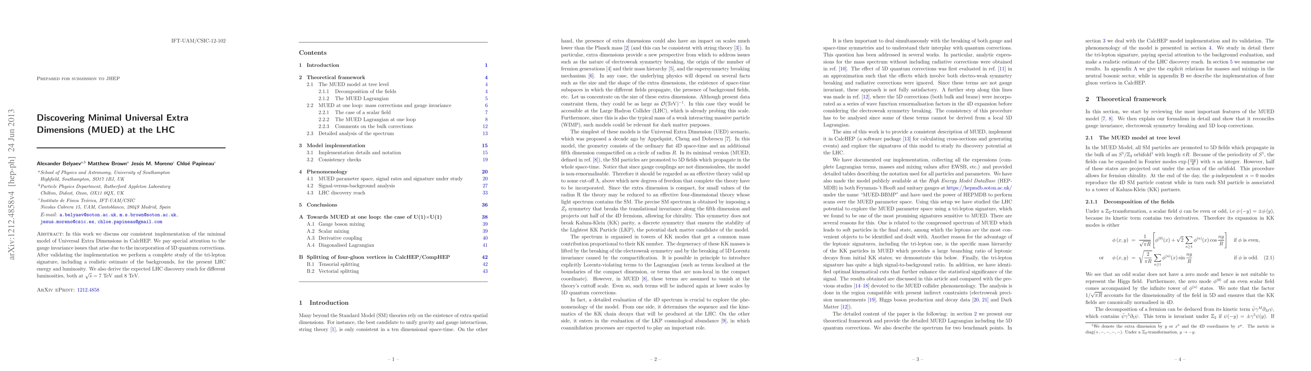 This paper presents a consistent implementation of the Minimal Universal Extra Dimensions (MUED) model in CalcHEP, addressing gauge invariance issues from 5D quantum corrections. It evaluates the tri-lepton signature for current LHC conditions and estimates the discovery potential at 7 TeV and 8 TeV energies across various luminosities.