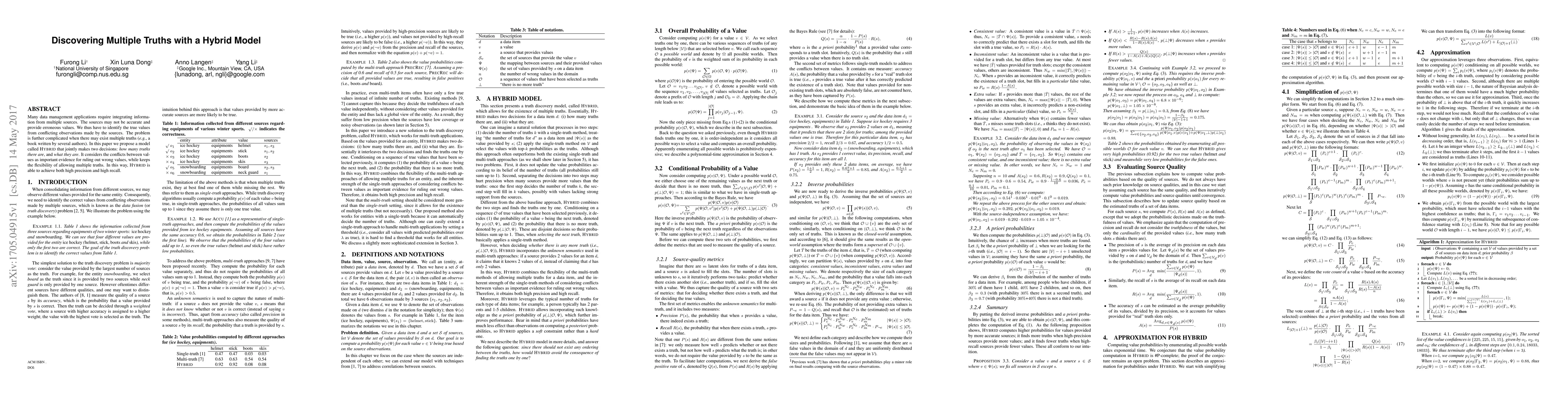 This paper proposes a Hybrid model to integrate information from multiple potentially conflicting sources, aiming to identify the true values and determine the number of possible truths. The model leverages conflicts between values to improve accuracy while maintaining flexibility to accommodate multiple truths, achieving high precision and recall.