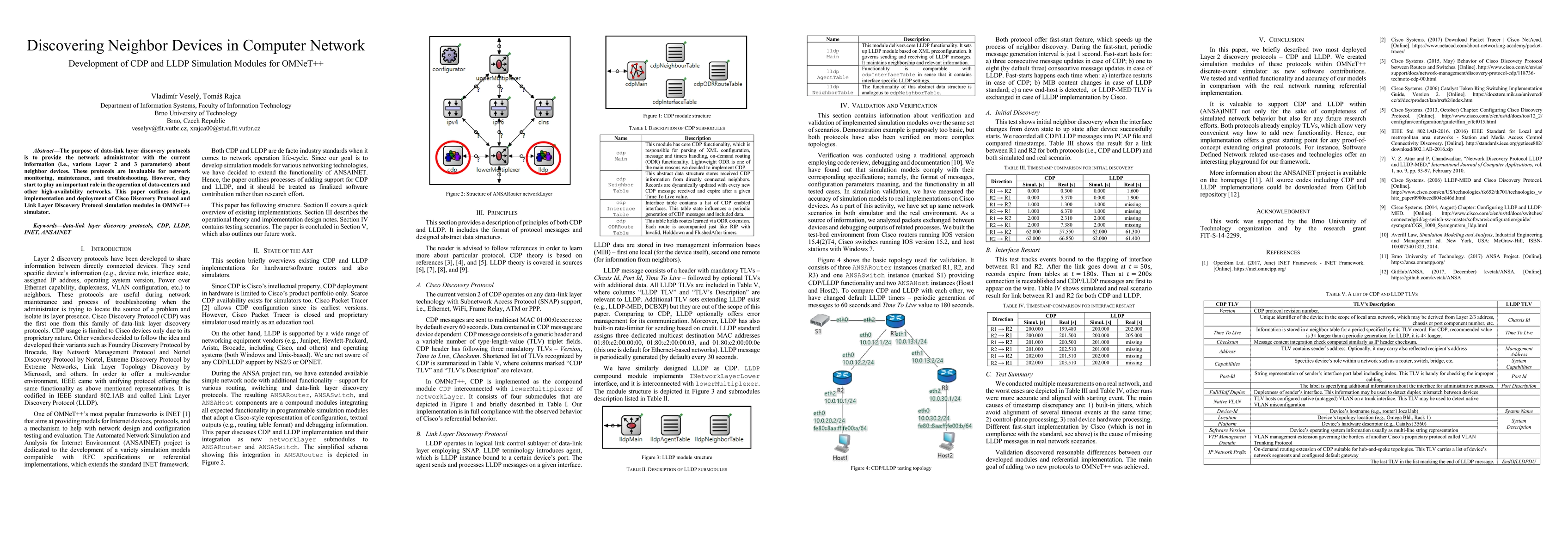 The purpose of data-link layer discovery protocols is to provide the network administrator with the current information (i.e., various Layer 2 and 3 parameters) about neighbor devices. These protocols are invaluable for network monitoring, maintenance, and troubleshooting. However, they start to play an important role in the operation of data-centers and other high-availability networks. This paper outlines design, implementation and deployment of Cisco Discovery Protocol and Link Layer Discovery Protocol simulation modules in OMNeT++ simulator.