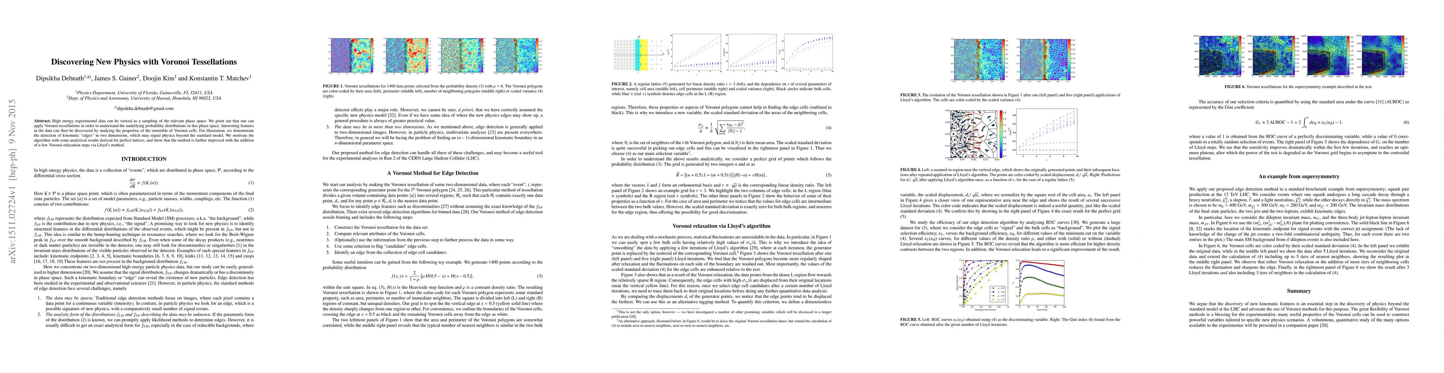 This paper explores the use of Voronoi tessellations to analyze high energy experimental data, revealing underlying probability distributions and potential new physics. The method detects kinematic "edges" in phase space, suggesting physics beyond the standard model, enhanced by Voronoi relaxation steps.