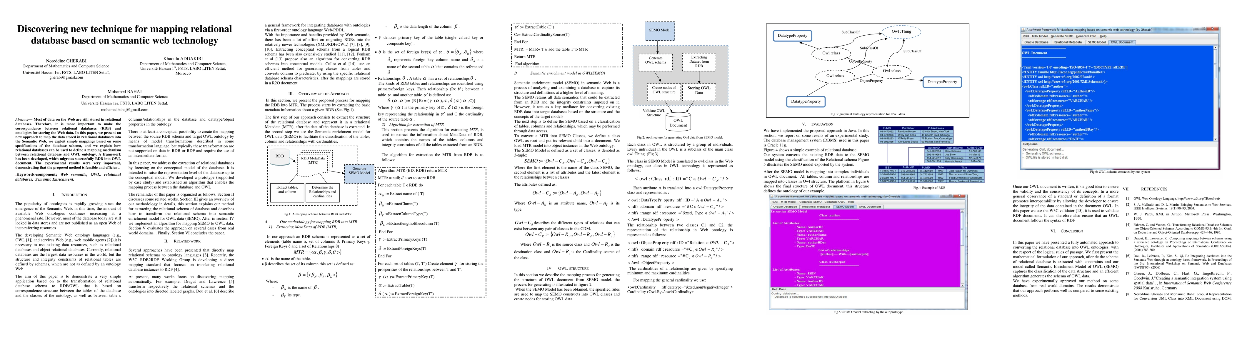 This paper introduces a novel technique for mapping relational databases to Semantic Web technologies, specifically OWL ontologies. The proposed framework successfully migrates relational data into OWL documents, demonstrating feasibility and efficiency through experimental results.