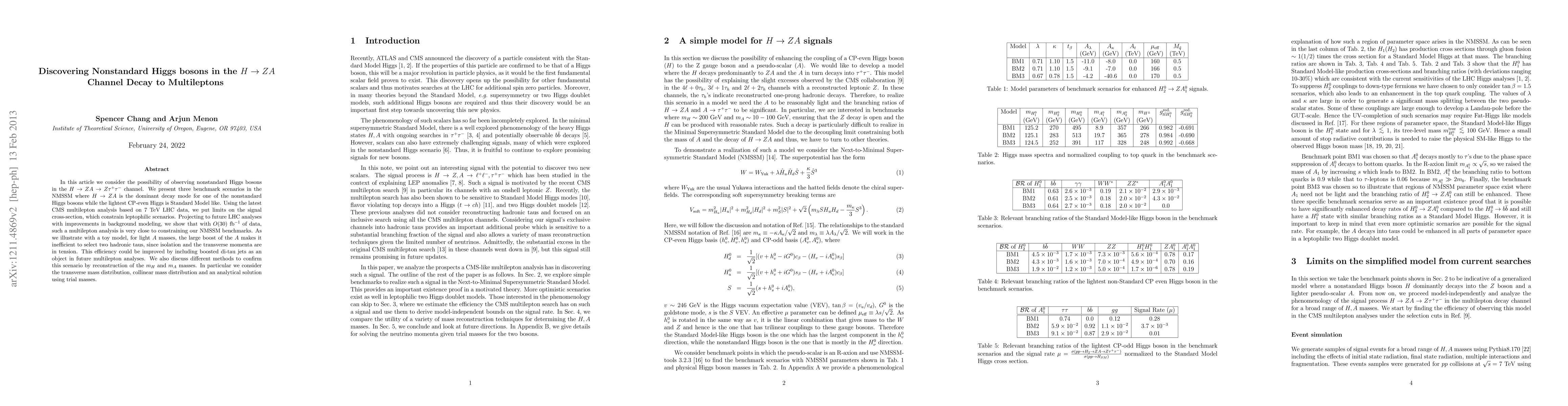 In this article we consider the possibility of observing nonstandard Higgs bosons in the H -> Z A -> Z tau+ tau- channel. We present three benchmark scenarios in the NMSSM where H -> ZA is the dominant decay mode for one of the nonstandard Higgs bosons while the lightest CP-even Higgs is Standard Model like. Using the latest CMS multilepton analysis based on 7 TeV LHC data, we put limits on the signal cross-section, which constrain leptophilic scenarios. Projecting to future LHC analyses with improvements in background modeling, we show that with O(30) fb^{-1} of data, such a multilepton analysis is very close to constraining our NMSSM benchmarks. As we illustrate with a toy model, for light A masses, the large boost of the A makes it inefficient to select two hadronic taus, since isolation and the transverse momenta are in tension. This efficiency could be improved by including boosted di-tau jets as an object in future multilepton analyses. We also discuss different methods to confirm this scenario by reconstruction of the m_H and m_A masses. In particular we consider the transverse mass distribution, collinear mass distribution and an analytical solution using trial masses.