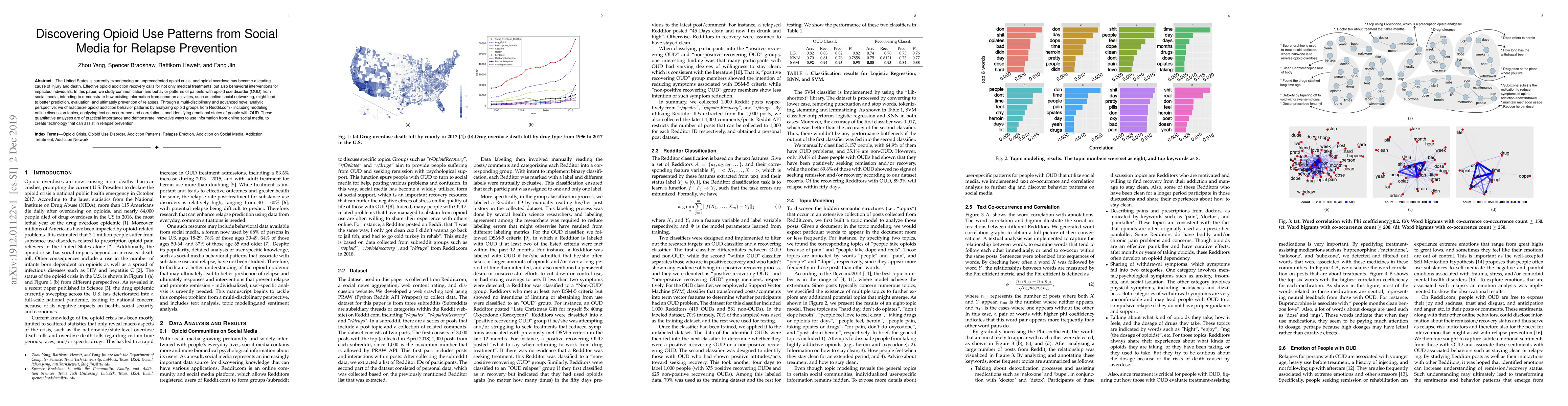 The paper presents an innovative method for using information from social media posts and discussions to predict potential relapse, discover topics associated with use, treatment, and remission, and utilize emotional/affective sentiments to predict relapse risk.