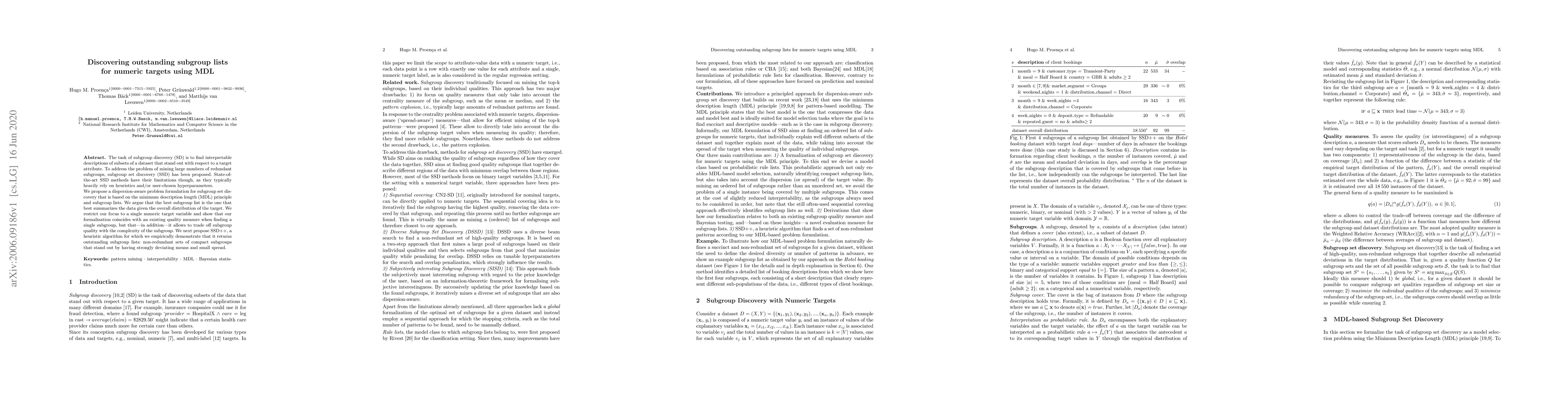 The task of subgroup discovery (SD) is to find interpretable descriptions of subsets of a dataset that stand out with respect to a target attribute. To address the problem of mining large numbers of redundant subgroups, subgroup set discovery (SSD) has been proposed. State-of-the-art SSD methods have their limitations though, as they typically heavily rely on heuristics and/or user-chosen hyperparameters. We propose a dispersion-aware problem formulation for subgroup set discovery that is based on the minimum description length (MDL) principle and subgroup lists. We argue that the best subgroup list is the one that best summarizes the data given the overall distribution of the target. We restrict our focus to a single numeric target variable and show that our formalization coincides with an existing quality measure when finding a single subgroup, but that-in addition-it allows to trade off subgroup quality with the complexity of the subgroup. We next propose SSD++, a heuristic algorithm for which we empirically demonstrate that it returns outstanding subgroup lists: non-redundant sets of compact subgroups that stand out by having strongly deviating means and small spread.