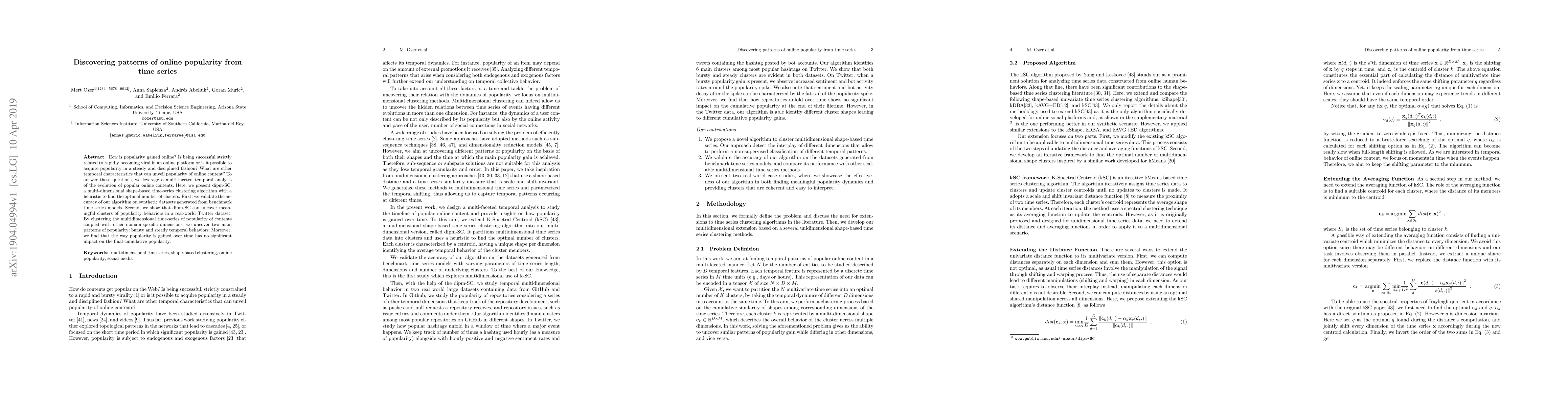 This paper introduces dipm-SC, a clustering algorithm to analyze temporal patterns of online content popularity. It finds two main patterns—bursty and steady—and concludes that the method of gaining popularity does not significantly affect final popularity.