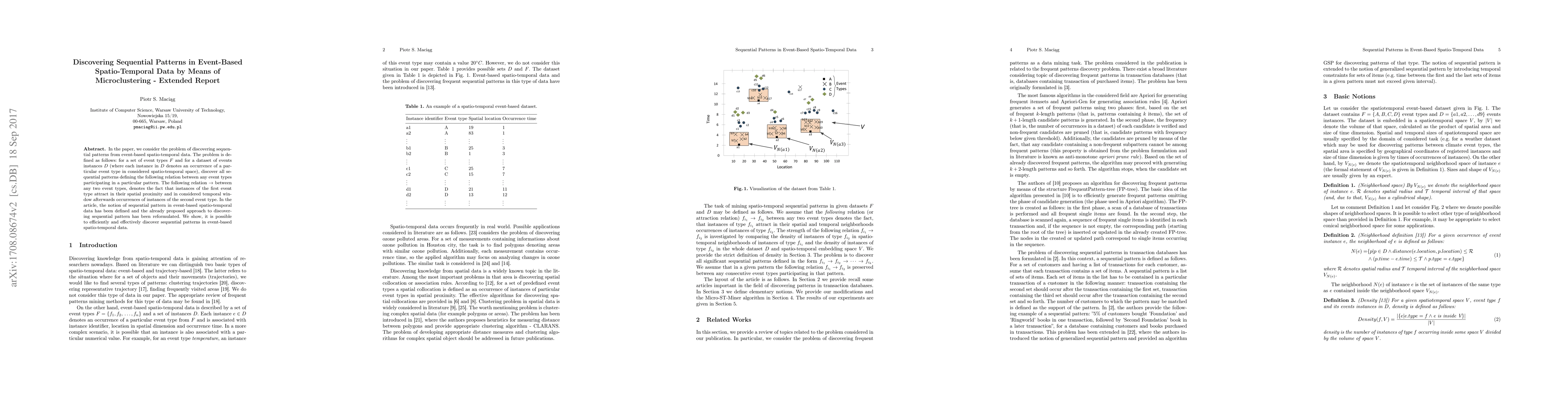 This paper proposes a method for discovering sequential patterns in event-based spatio-temporal data using microclustering. It defines sequential patterns and reformulates an existing approach to efficiently identify relationships between event types in spatial and temporal contexts.