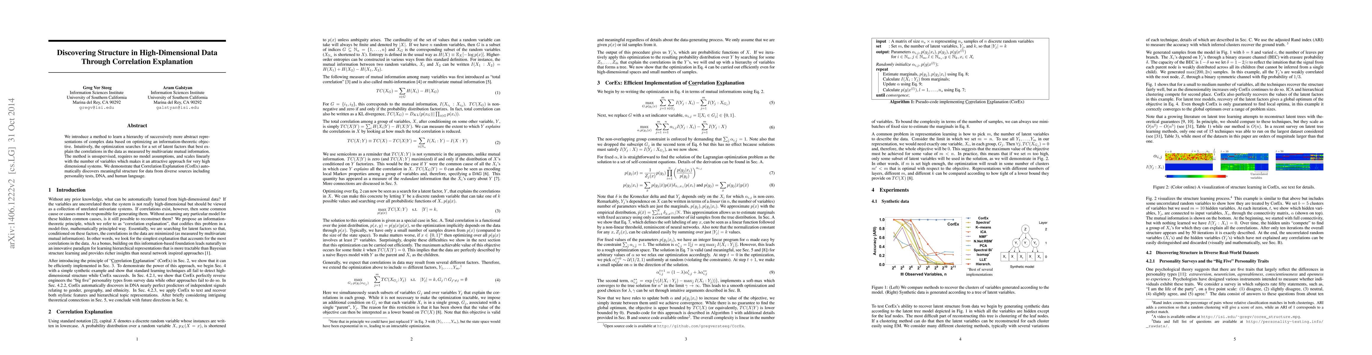 We introduce a method to learn a hierarchy of successively more abstract representations of complex data based on optimizing an information-theoretic objective. Intuitively, the optimization searches for a set of latent factors that best explain the correlations in the data as measured by multivariate mutual information. The method is unsupervised, requires no model assumptions, and scales linearly with the number of variables which makes it an attractive approach for very high dimensional systems. We demonstrate that Correlation Explanation (CorEx) automatically discovers meaningful structure for data from diverse sources including personality tests, DNA, and human language.