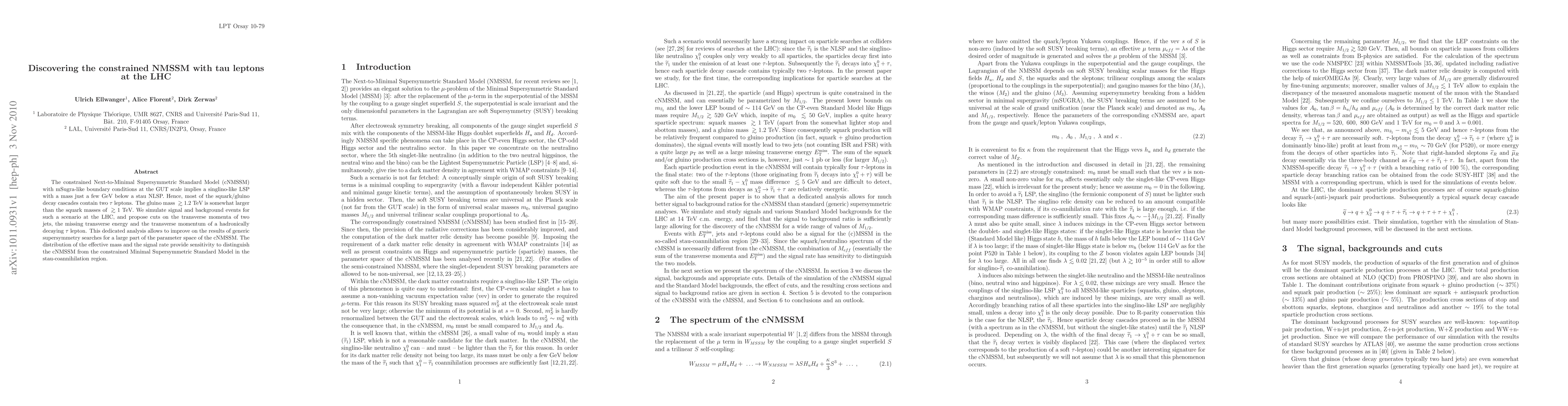 The constrained Next-to-Minimal Supersymmetric Standard Model (cNMSSM) with mSugra-like boundary conditions at the GUT scale implies a singlino-like LSP with a mass just a few GeV below a stau NLSP. Hence, most of the squark/gluino decay cascades contain two tau leptons. The gluino mass >~ 1.2 TeV is somewhat larger than the squark masses of >~ 1 TeV. We simulate signal and background events for such a scenario at the LHC, and propose cuts on the transverse momenta of two jets, the missing transverse energy and the transverse momentum of a hadronically decaying tau lepton. This dedicated analysis allows to improve on the results of generic supersymmetry searches for a large part of the parameter space of the cNMSSM. The distribution of the effective mass and the signal rate provide sensitivity to distinguish the cNMSSM from the constrained Minimal Supersymmetric Standard Model in the stau-coannihilation region.