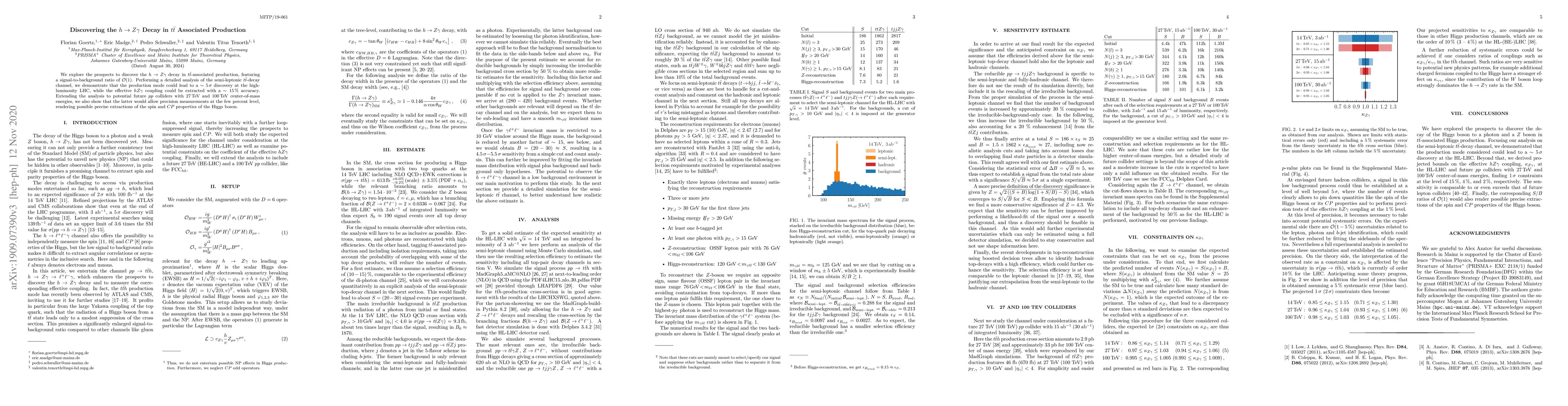 This paper investigates the potential to detect the $h \to Z \gamma$ decay in $t \bar t$-associated production at the high-luminosity LHC, achieving a $\sim5\,\sigma$ discovery with a signal-to-background ratio of ${\cal O}(1)$. It also explores future colliders, predicting precision measurements at the few percent level for extracting the Higgs boson's spin and CP properties.