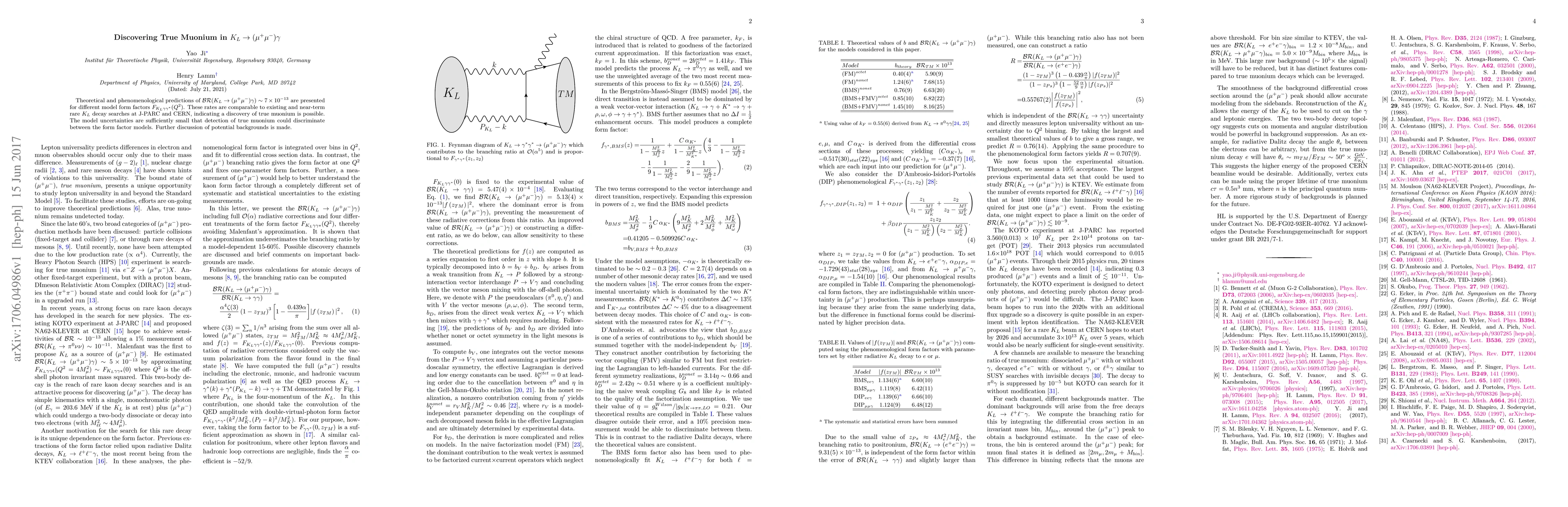 Theoretical and phenomenological predictions of $\mathcal{BR}(K_L\rightarrow (\mu^+\mu^-) \gamma)\sim7\times10^{-13}$ are presented for different model form factors $F_{K_L\gamma\gamma^*}(Q^2)$. These rates are comparable to existing and near-term rare $K_L$ decay searches at J-PARC and CERN, indicating a discovery of true muonium is possible. The model uncertainties are sufficiently small that detection of true muonium could discriminate between the form factor models. Further discussion of potential backgrounds is made.