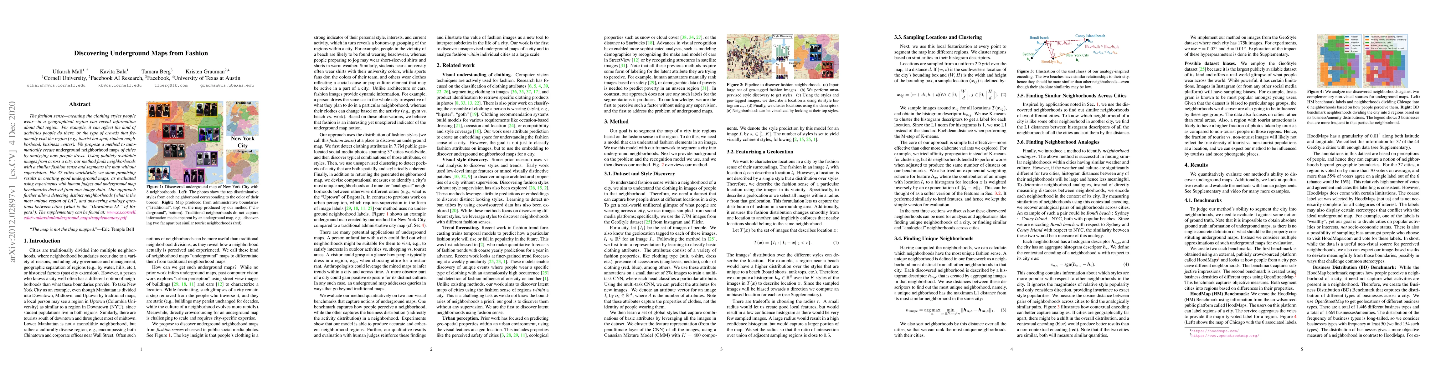 The fashion sense -- meaning the clothing styles people wear -- in a geographical region can reveal information about that region. For example, it can reflect the kind of activities people do there, or the type of crowds that frequently visit the region (e.g., tourist hot spot, student neighborhood, business center). We propose a method to automatically create underground neighborhood maps of cities by analyzing how people dress. Using publicly available images from across a city, our method finds neighborhoods with a similar fashion sense and segments the map without supervision. For 37 cities worldwide, we show promising results in creating good underground maps, as evaluated using experiments with human judges and underground map benchmarks derived from non-image data. Our approach further allows detecting distinct neighborhoods (what is the most unique region of LA?) and answering analogy questions between cities (what is the "Downtown LA" of Bogota?).