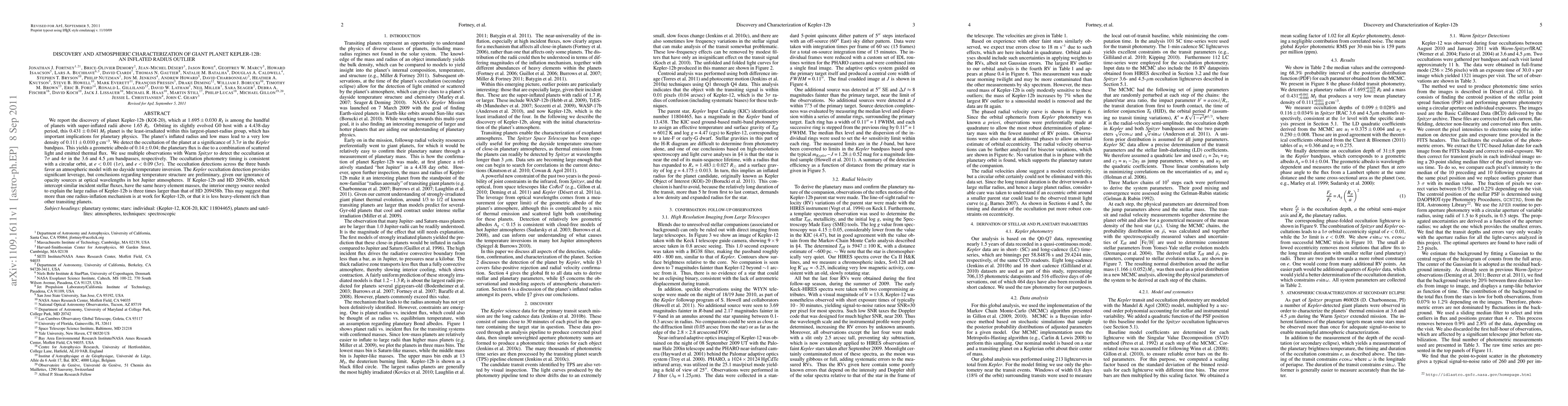 The research discovers and characterizes the giant planet Kepler-12b, noting its unusually inflated radius and low density. Observations suggest the planet's atmosphere lacks a dayside temperature inversion, hinting at multiple mechanisms for its radius inflation compared to similar planets.