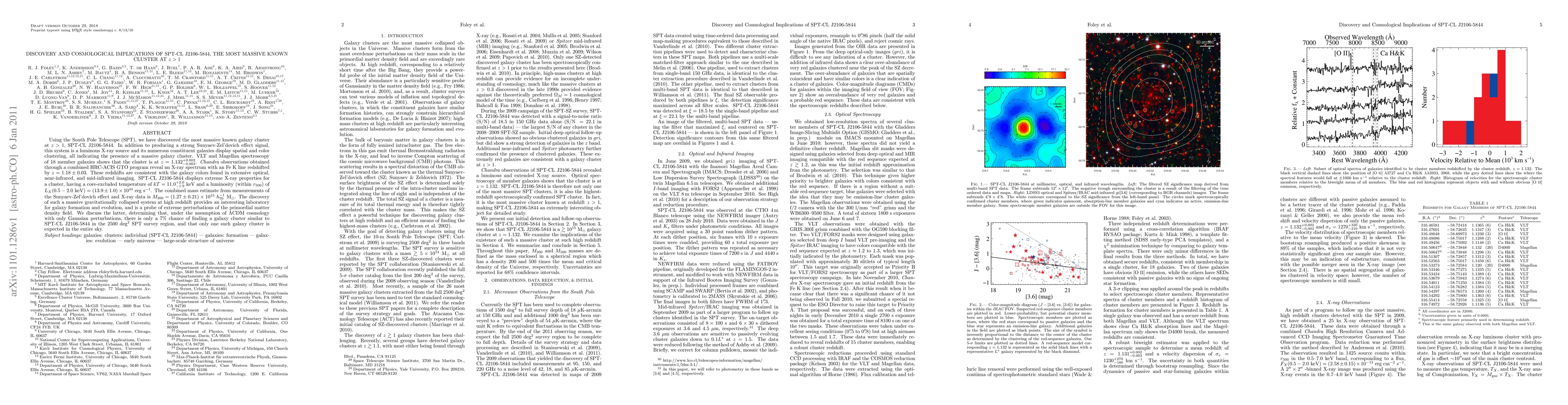 The South Pole Telescope discovered SPT-CL J2106-5844, the most massive galaxy cluster known at z > 1, with significant Sunyaev-Zel'dovich effect and X-ray signals. This cluster's extreme X-ray properties and mass estimate of M_200 = (1.27 +/- 0.21) x 10^15 M_sun make it a rare object in the LambdaCDM cosmological model, providing insights into galaxy formation and primordial density perturbations.