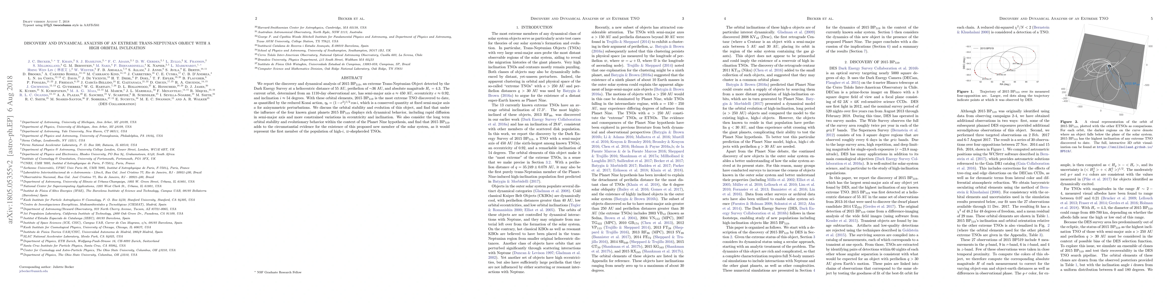 The paper reports the discovery of 2015 BP$_{519}$, an extreme Trans-Neptunian Object with a highly inclined orbit, and analyzes its dynamical behavior, finding it to be the most extreme TNO discovered to date. The object's orbit suggests it supports the Planet Nine Hypothesis.