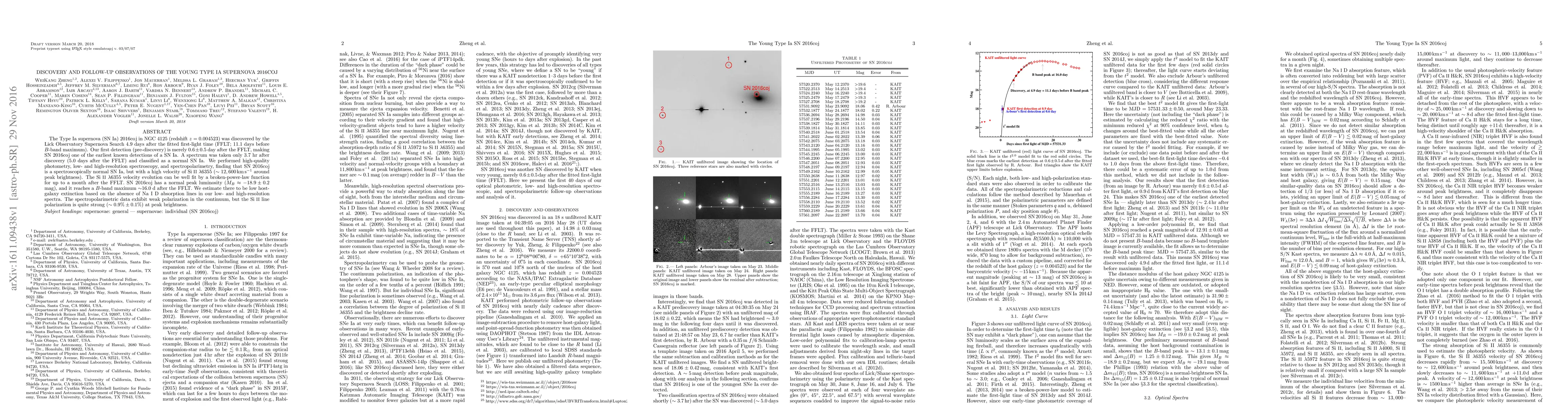 The Type~Ia supernova (SN~Ia) 2016coj in NGC 4125 (redshift $z=0.004523$) was discovered by the Lick Observatory Supernova Search 4.9 days after the fitted first-light time (FFLT; 11.1 days before $B$-band maximum). Our first detection (pre-discovery) is merely $0.6\pm0.5$ day after the FFLT, making SN 2016coj one of the earliest known detections of a SN Ia. A spectrum was taken only 3.7 hr after discovery (5.0 days after the FFLT) and classified as a normal SN Ia. We performed high-quality photometry, low- and high-resolution spectroscopy, and spectropolarimetry, finding that SN 2016coj is a spectroscopically normal SN Ia, but with a high velocity of \ion{Si}{2} $\lambda$6355 ($\sim 12,600$\,\kms\ around peak brightness). The \ion{Si}{2} $\lambda$6355 velocity evolution can be well fit by a broken-power-law function for up to a month after the FFLT. SN 2016coj has a normal peak luminosity ($M_B \approx -18.9 \pm 0.2$ mag), and it reaches a $B$-band maximum \about16.0~d after the FFLT. We estimate there to be low host-galaxy extinction based on the absence of Na~I~D absorption lines in our low- and high-resolution spectra. The spectropolarimetric data exhibit weak polarization in the continuum, but the \ion{Si}{2} line polarization is quite strong ($\sim 0.9\% \pm 0.1\%$) at peak brightness.