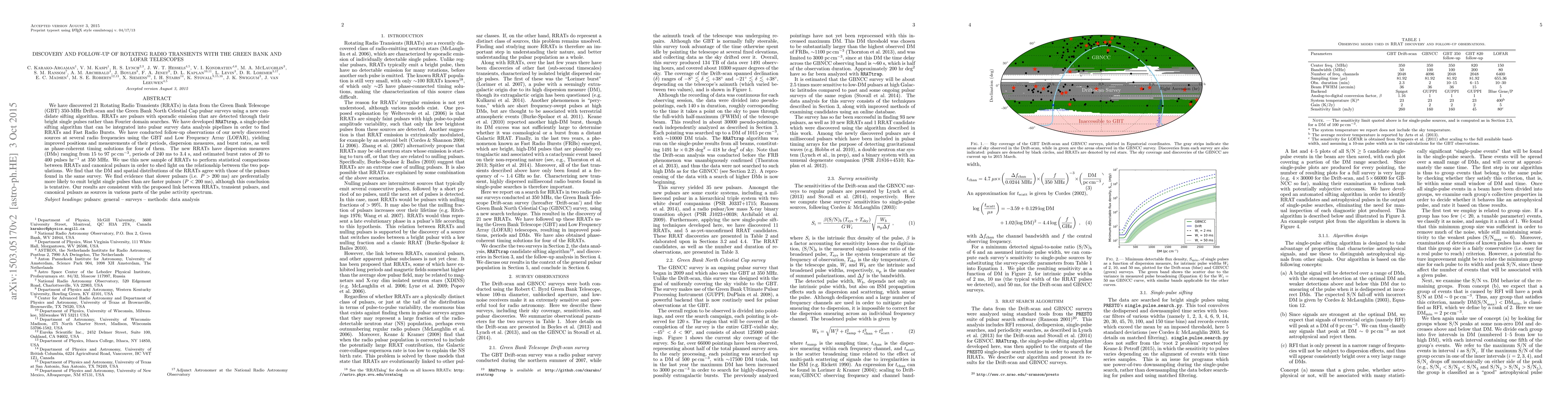 Scientists discovered 21 Rotating Radio Transients (RRATs) using a new algorithm and followed up with improved measurements, finding RRATs with varying periods and burst rates, and comparing them to canonical pulsars.