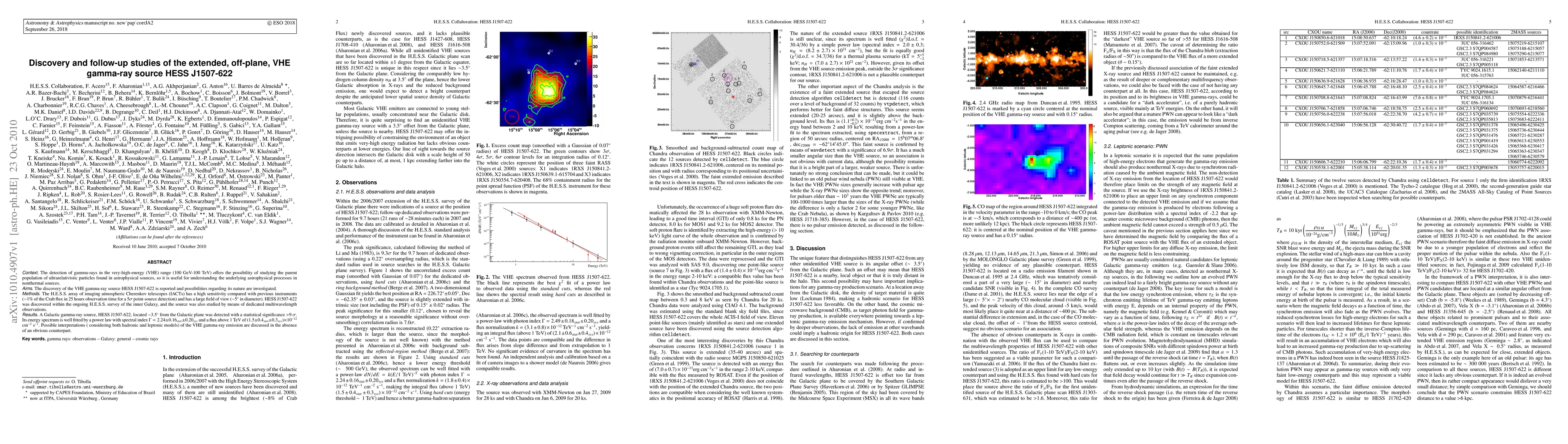 The H.E.S.S. array detected the VHE gamma-ray source HESS J1507-622 with >9 sigma significance, suggesting an extended, off-plane emission. The source's spectrum fits a power law, and its nature remains uncertain, with both hadronic and leptonic models considered.