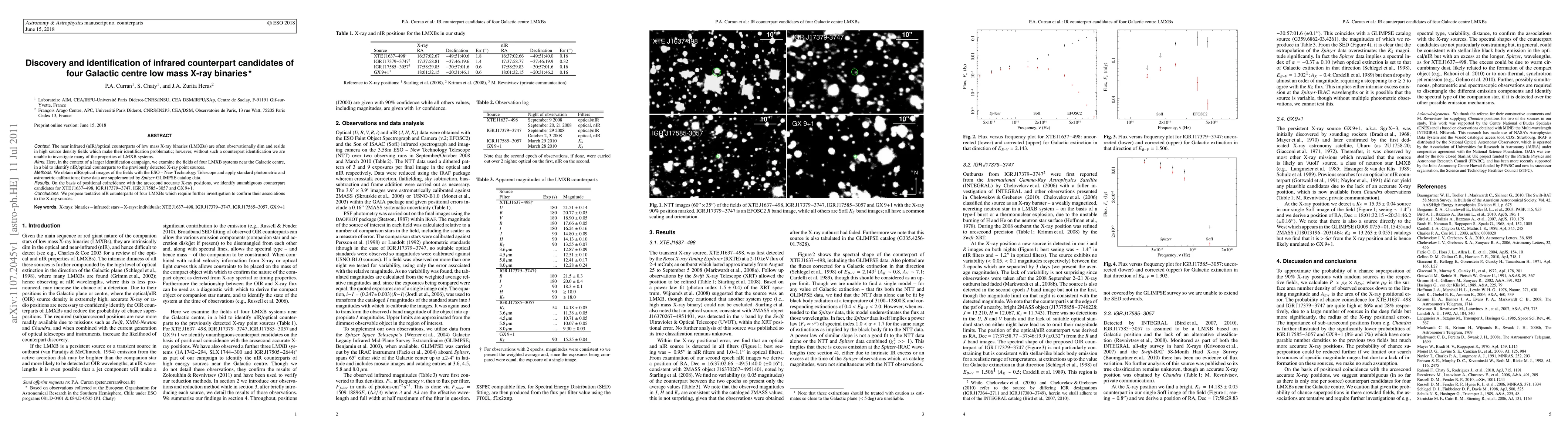 The near infrared (nIR)/optical counterparts of low mass X-ray binaries (LMXBs) are often observationally dim and reside in high source density fields which make their identification problematic; however, without such a counterpart identification we are unable to investigate many of the properties of LMXB systems. Here, in the context of a larger identification campaign, we examine the fields of four LMXB systems near the Galactic centre, in a bid to identify nIR/optical counterparts to the previously detected X-ray point sources. We obtain nIR/optical images of the fields with the ESO - New Technology Telescope and apply standard photometric and astrometric calibrations; these data are supplemented by Spitzer-GLIMPSE catalog data. On the basis of positional coincidence with the arcsecond accurate X-ray positions, we identify unambiguous counterpart candidates for XTE J1637-498, IGR J17379-3747, IGR J17585-3057 and GX 9+1. We propose tentative nIR counterparts of four LMXBs which require further investigation to confirm their associations to the X-ray sources.