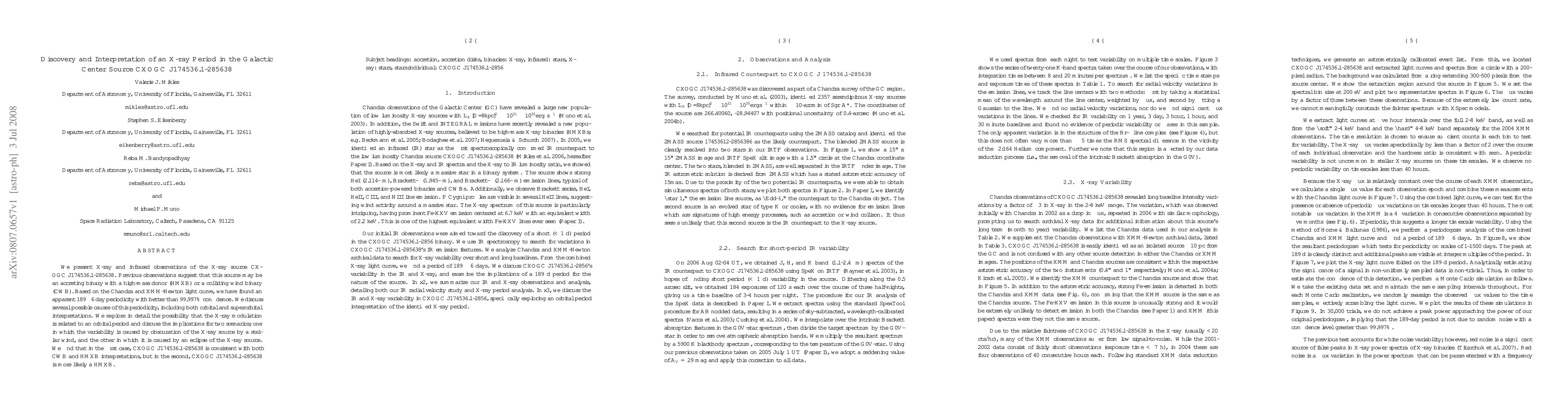 The research identifies an X-ray source, CXOGC J174536.1-285638, showing a 189-day periodicity in Chandra and XMM-Newton data, possibly indicating an orbital or superorbital phenomenon. The source may be either a colliding wind binary or a high-mass X-ray binary, with evidence favoring the latter if the periodicity results from X-ray source eclipses.