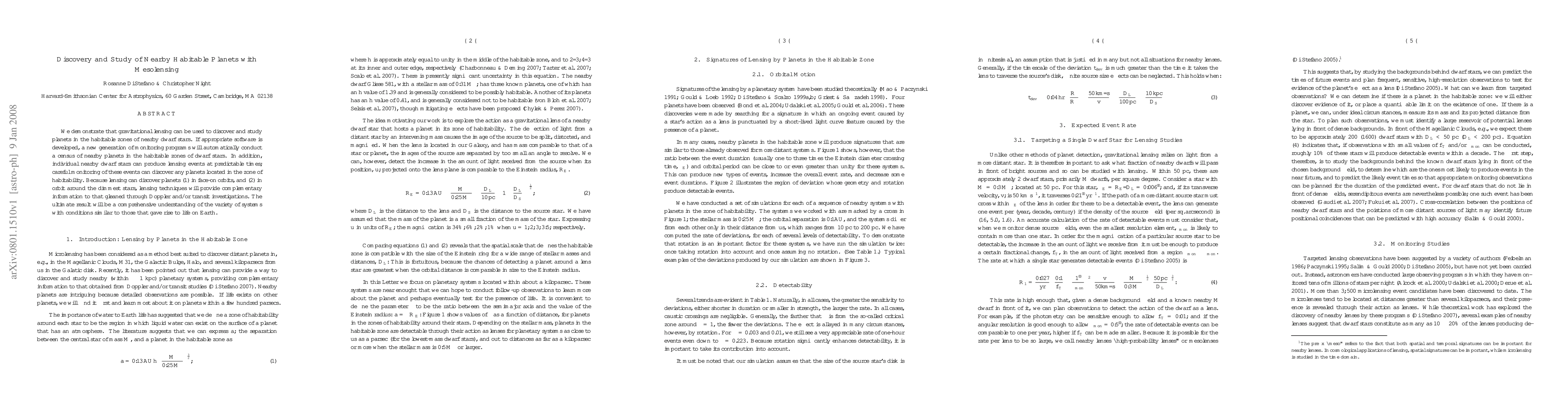 This paper proposes using gravitational lensing to discover and study planets in the habitable zones of nearby dwarf stars, offering a new method to complement traditional Doppler and transit techniques. With appropriate software, this approach can automate the census of habitable planets and provide insights into systems potentially conducive to life.