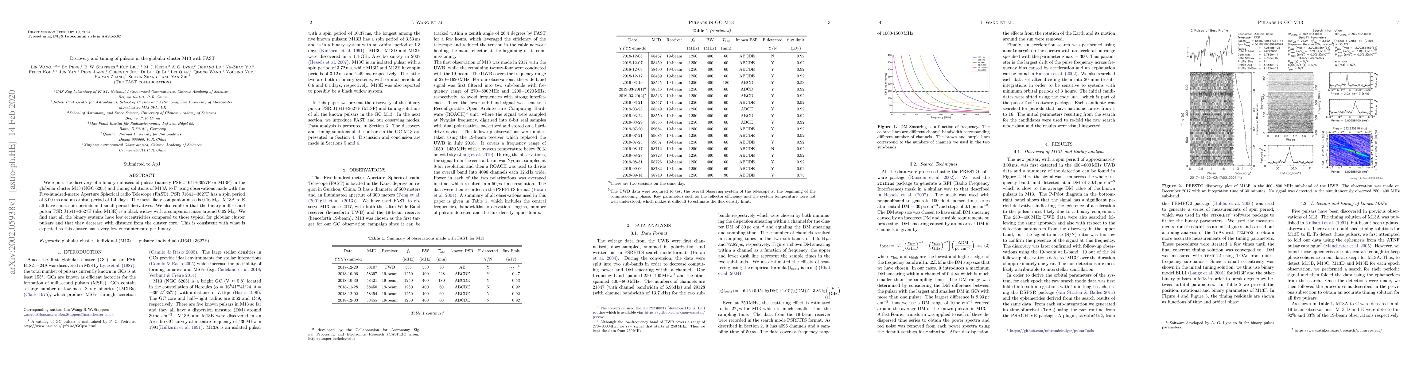 The paper reports the discovery of a new binary millisecond pulsar, PSR J1641+3627F, in the globular cluster M13 using FAST, and provides timing solutions for M13A to F. The pulsars exhibit low eccentricities and small period derivatives, consistent with the cluster's low encounter rate.
