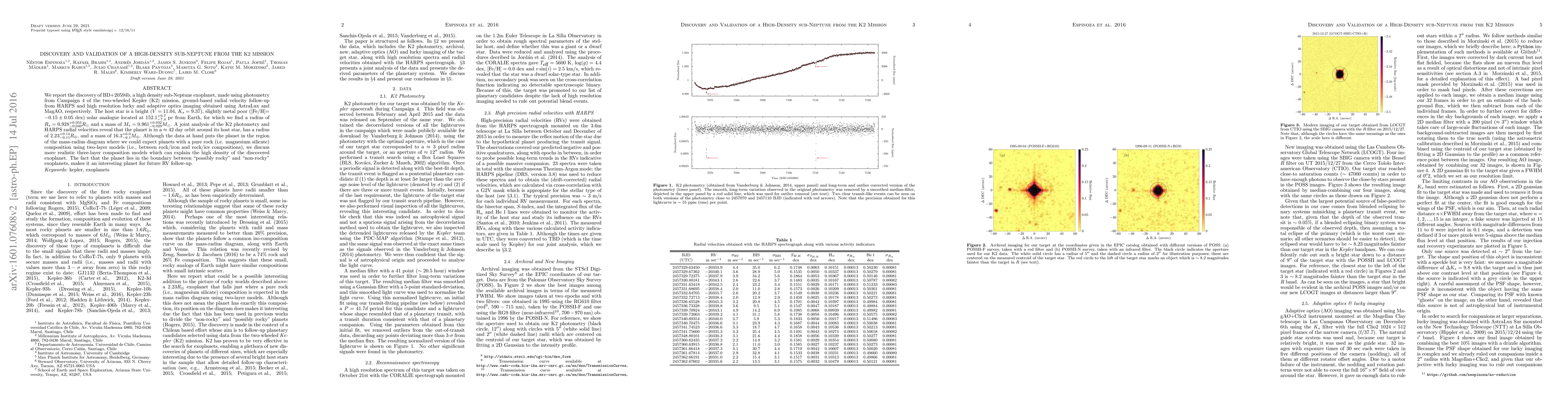 This paper reports the discovery of BD+20594b, a high-density sub-Neptune exoplanet, using K2 mission data and ground-based observations. The planet orbits a solar analogue star in a 42-day period, with intriguing three-layer composition models explaining its high density.