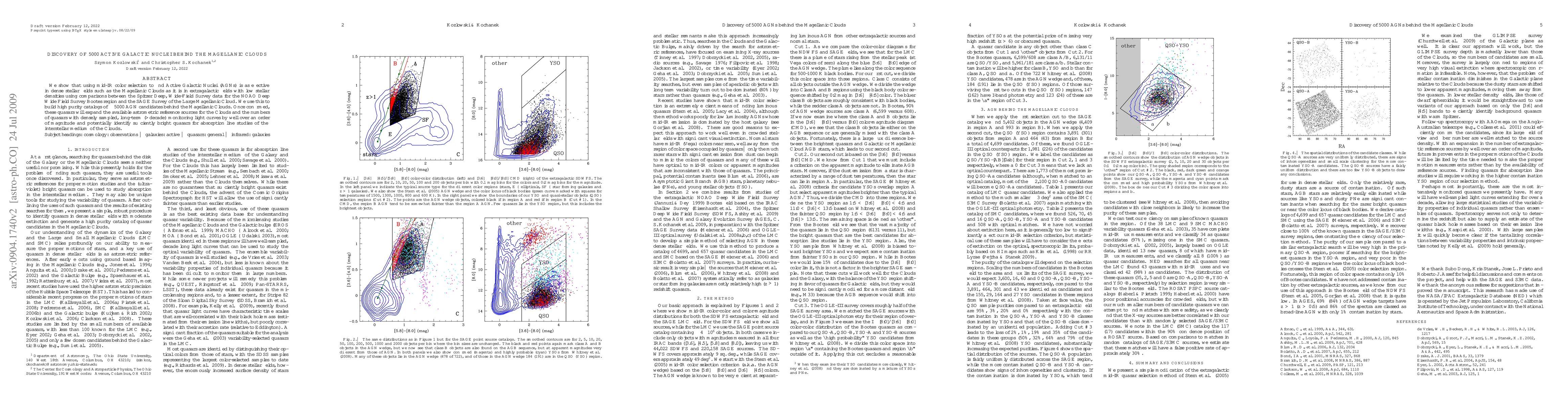 We show that using mid-IR color selection to find active galactic nuclei (AGN) is as effective in dense stellar fields such as the Magellanic Clouds as it is in extragalactic fields with low stellar densities using comparisons between the Spitzer Deep, Wide-Field Survey data for the NOAO Deep Wide Field Survey Bootes region and the SAGE Survey of the Large Magellanic Cloud. We use this to build high purity catalogs of ~ 5000 AGN candidates behind the Magellanic Clouds. Once confirmed, these quasars will expand the available astrometric reference sources for the Clouds and the numbers of quasars with densely sampled, long-term (>decade) monitoring light curves by well over an order of magnitude and potentially identify sufficiently bright quasars for absorption line studies of the interstellar medium of the Clouds.