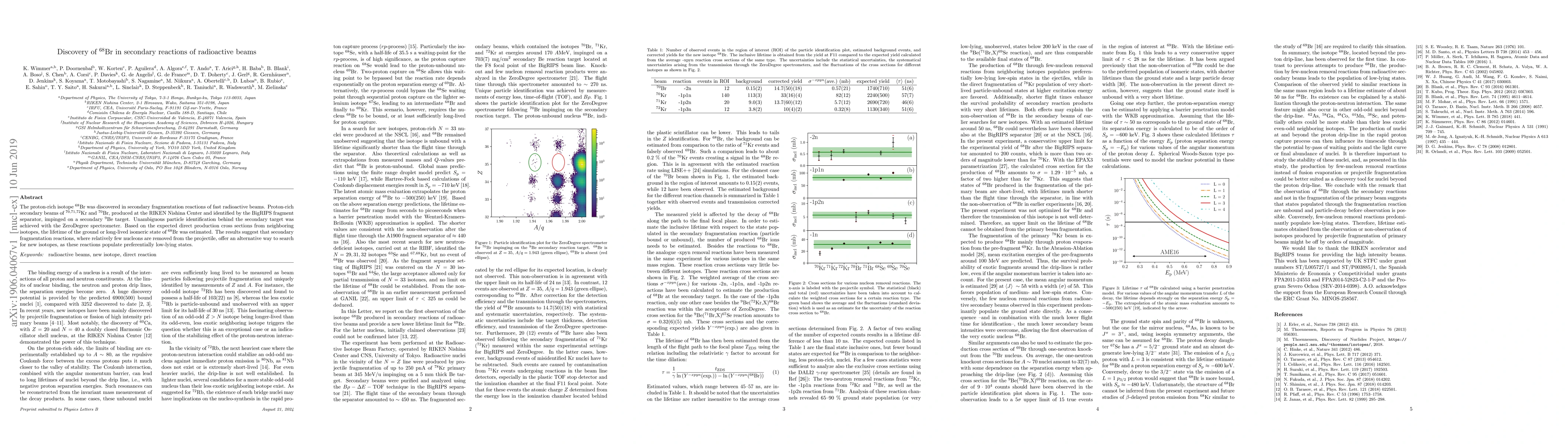 The research paper reports the discovery of the proton-rich isotope $^{68}$Br through secondary fragmentation reactions of fast radioactive beams at the RIKEN Nishina Center. The study suggests that secondary fragmentation reactions can be an effective method for discovering new isotopes, as they preferentially populate low-lying states.