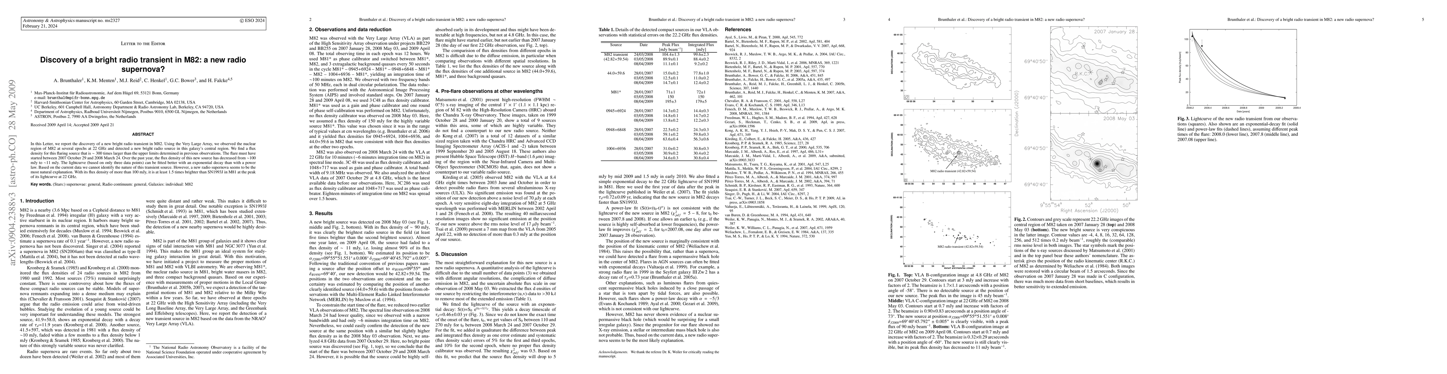 In this Letter, we report the discovery of a new bright radio transient in M82. Using the Very Large Array, we observed the nuclear region of M82 at several epochs at 22 GHz and detected a new bright radio source in this galaxy's central region. We find a flux density for this flaring source that is ~300 times larger than upper limits determined in previous observations. The flare must have started between 2007 October 29 and 2008 March 24. Over the last year, the flux density of this new source has decreased from ~100 mJy to ~11 mJy. The lightcurve (based on only three data points) can be fitted better with an exponential decay than with a power law. Based on the current data we cannot identify the nature of this transient source. However, a new radio supernova seems to be the most natural explanation. With it's flux density of more than 100 mJy, it is at least 1.5 times brighter than SN1993J in M81 at the peak of its lightcurve at 22 GHz.