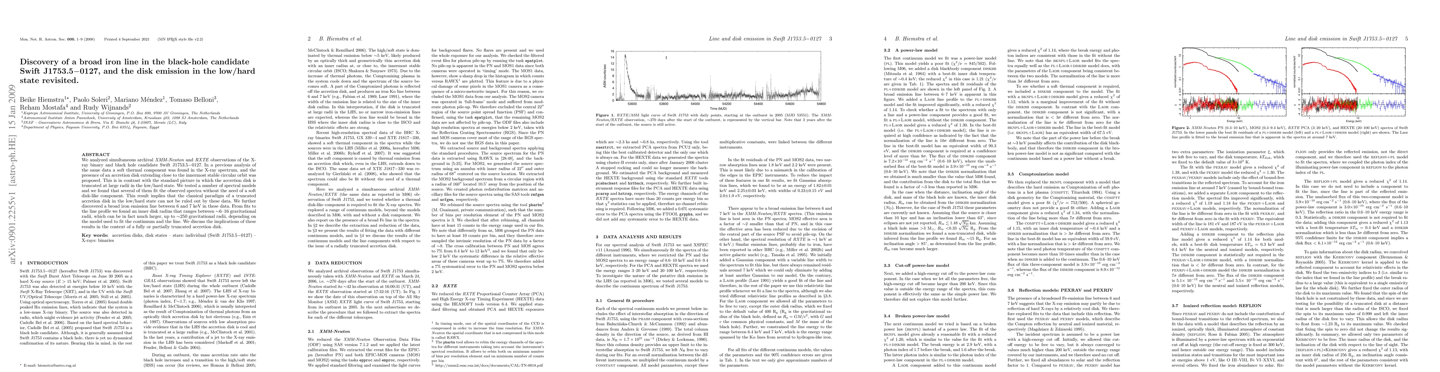 This paper reports the discovery of a broad iron line in the black-hole candidate Swift J1753.5-0127, challenging the conventional view of a truncated accretion disk in the low/hard state. The analysis suggests the inner disk radius could be much closer to the black hole than previously thought, with implications for disk structure models.