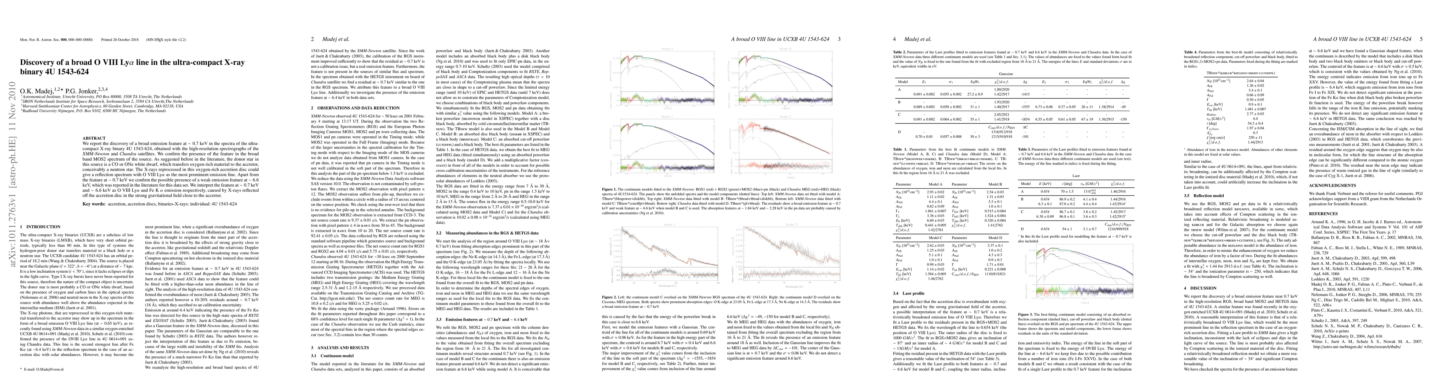 We report the discovery of a broad emission feature at ~0.7 keV in the spectra of the ultra-compact X-ray binary 4U 1543-624, obtained with the high-resolution spectrographs of the XMM-Newton and Chandra satellites. We confirm the presence of the feature in the broad band MOS2 spectrum of the source. As suggested before in the literature, the donor star in this source is a CO or ONe white dwarf, which transfers oxygen-rich material to the accretor, conceivably a neutron star. The X-rays reprocessed in this oxygen-rich accretion disc could give a reflection spectrum with O VIII Ly alpha as the most prominent emission line. Apart from the feature at ~0.7 keV we confirm the possible presence of a weak emission feature at ~6.6 keV, which was reported in the literature for this data set. We interpret the feature at ~0.7 keV and ~6.6 keV as O VIII Ly alpha and Fe K alpha emission respectively, caused by X-rays reflected off the accretion disc in the strong gravitational field close to the accretor.